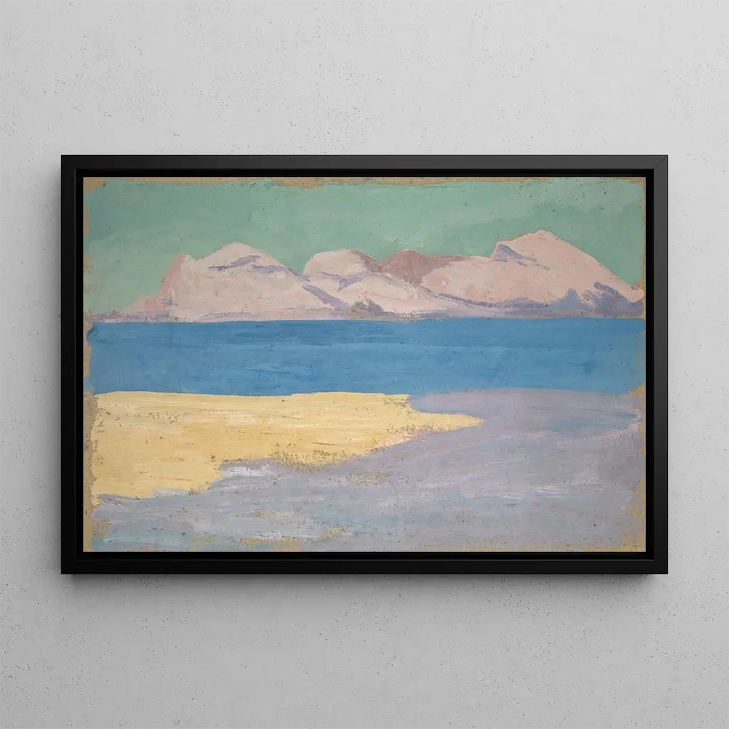 La stampa d'arte Bras de mer et chaîne de montagnes lointaine di Ernst Schiess offre una vista impressionante su un paesaggio marittimo, dove le onde danzano sotto il sole e le montagne si delineano all'orizzonte. Le tonalità di blu e verde si mescolano armoniosamente, creando un'atmosfera di tranquillità e fuga. La tecnica di Schiess, che combina realismo e impressionismo, permette di percepire la brezza marina e di ascoltare il sussurro delle onde. Ogni dettaglio, dai riflessi sull'acqua alle ombre delle montagne, contribuisce a una composizione che invita alla rêverie e alla contemplazione.