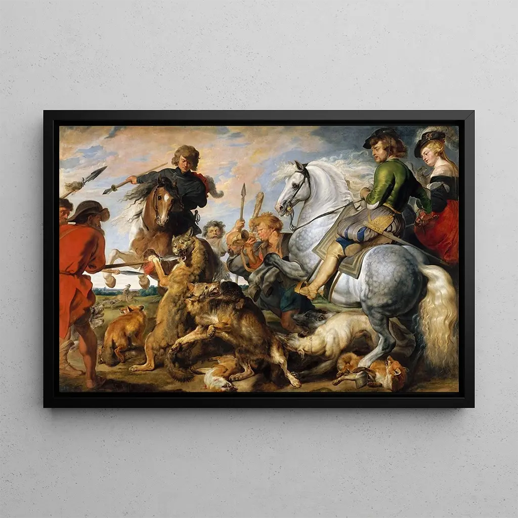 La riproduzione di Caccia al lupo e alla volpe ci immerge in una scena vivace, dove la natura selvaggia è messa in luce dall'artista Peter Paul Rubens. I colori vivaci e i movimenti dinamici degli animali e dei cacciatori creano un'atmosfera di tensione ed eccitazione. Rubens, noto per la sua padronanza del movimento, cattura l'energia della caccia con una precisione notevole. I dettagli degli animali, dei cavalieri e del paesaggio circostante si intrecciano, offrendo una visione vivida di una scena emblematica della vita rurale del XVII secolo. Questo quadro evoca la bellezza e la brutalità della natura, invitando a una contemplazione dell'armonia tra l'uomo e il suo ambiente.