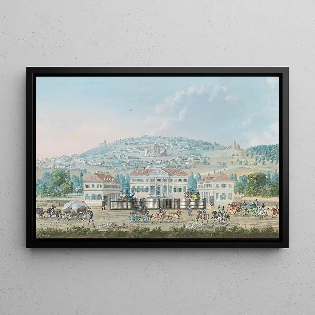 Il quadro "Château Zichy" di Balthasar Wigand ci immerge nell'universo maestoso dell'architettura storica. Quest'opera, ricca di dettagli, mette in evidenza la grandezza del castello, con le sue torri slanciate e i suoi giardini rigogliosi. I colori delicati, che vanno dai verdi profondi alle sfumature pastello, creano un'atmosfera romantica e nostalgica. Wigand riesce a catturare la luce in modo tale da dare vita alla scena, evocando un'atmosfera di calma e serenità, come se il tempo si fosse fermato in questo luogo incantato.