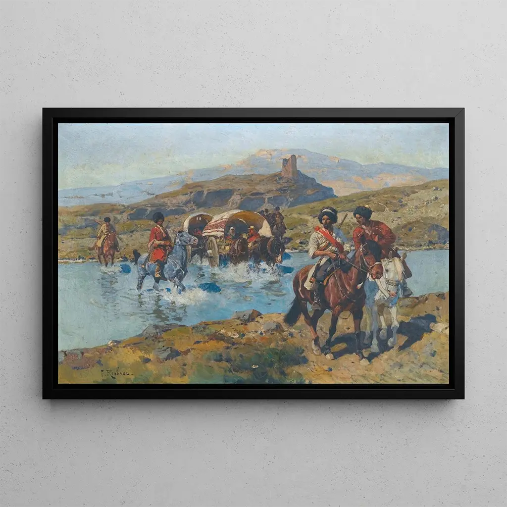 La stampa d'arte de "Cosaques traversant un gué" est un choix décoratif captivant pour tout espace. Que ce soit dans un bureau, un salon ou une salle d'exposition, cette toile apporte une touche d'histoire et de culture. Sa qualité d'impression garantit une fidélité aux détails et aux couleurs, offrant ainsi un attrait esthétique indéniable. En intégrant ce tableau dans votre décoration, vous créez un point focal qui suscite l'intérêt et la conversation, tout en rendant hommage à l'héritage artistique et historique de la Russie.