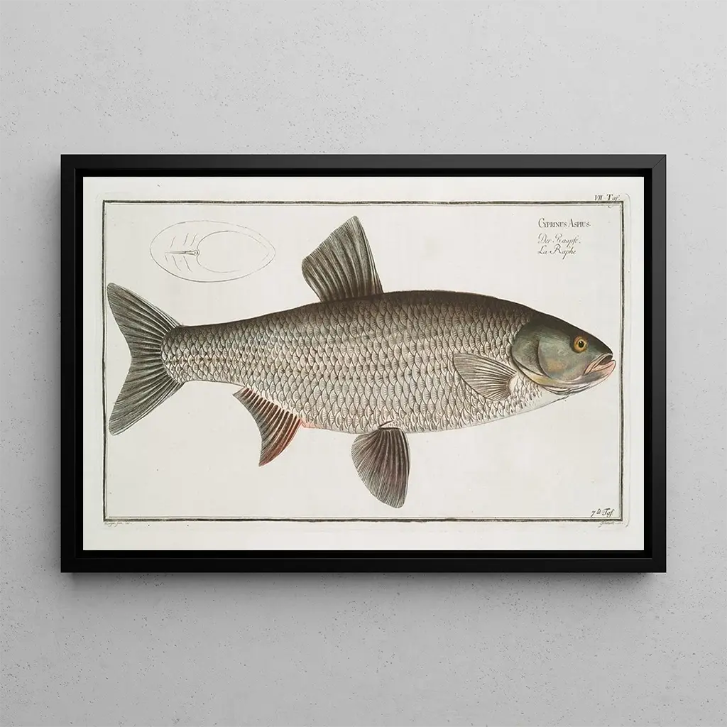 Cyprinus Aspius L'Aspius : un'ode alla bellezza acquatica Le stampe d'arte di Cyprinus Aspius L'Aspius, realizzate da Marcus Elieser Bloch, ci immergono in un affascinante universo acquatico. Questo quadro, ricco di dettagli, mette in evidenza la maestà dell'aspic, un pesce con riflessi argentati, che si muove nel suo habitat naturale. I colori vivaci e le sfumature delicate di blu e verde creano un'atmosfera serena e rilassante. La tecnica dell'artista, che combina precisione e sensibilità, permette di percepire la fluidità dell'acqua e l'eleganza del movimento del pesce. Bloch riesce a catturare l'essenza stessa della vita acquatica, invitando lo spettatore ad ammirare la bellezza della natura. Marcus Elieser Bloch : un pioniere dell'illustrazione zoologica Marcus Elieser Bloch, nato nel 1723, è riconosciuto come uno dei primi illustratori zoologici. Operando principalmente nel XVIII secolo, ha saputo unire scienza e arte, producendo opere che hanno segnato la storia dell'illustrazione. Influenzato dalle scoperte scientifiche del suo tempo, Bloch ha dedicato la sua vita allo studio dei pesci, realizzando tavole che sono diventate riferimenti nel settore. La sua opera principale, "Ichthyologie", ha permesso di comprendere meglio la diversità delle specie acquatiche e ha avuto un impatto duraturo sulla zoologia. L'importanza del suo lavoro risiede nella capacità di coniugare precisione scientifica ed estetica, facendo delle sue stampe d'arte pezzi unici. Una creazione decorativa con molteplici vantaggi Le stampe d'arte di Cyprinus Aspius L'Aspius sono un elemento decorativo ideale per qualsiasi interno, che si tratti di un soggiorno, di un ufficio o di una camera da letto. La qualità di stampa e la fedeltà ai dettagli originali le rendono una scelta perfetta per gli appassionati d'arte e di natura. Questo quadro aggiunge un tocco di serenità ed eleganza alla tua decorazione, stimolando curiosità e ammirazione tra i tuoi ospiti. Con il suo indiscutibile fascino estetico, questa tela non è solo un elemento visivo, ma anche un invito alla contemplazione della bellezza naturale.