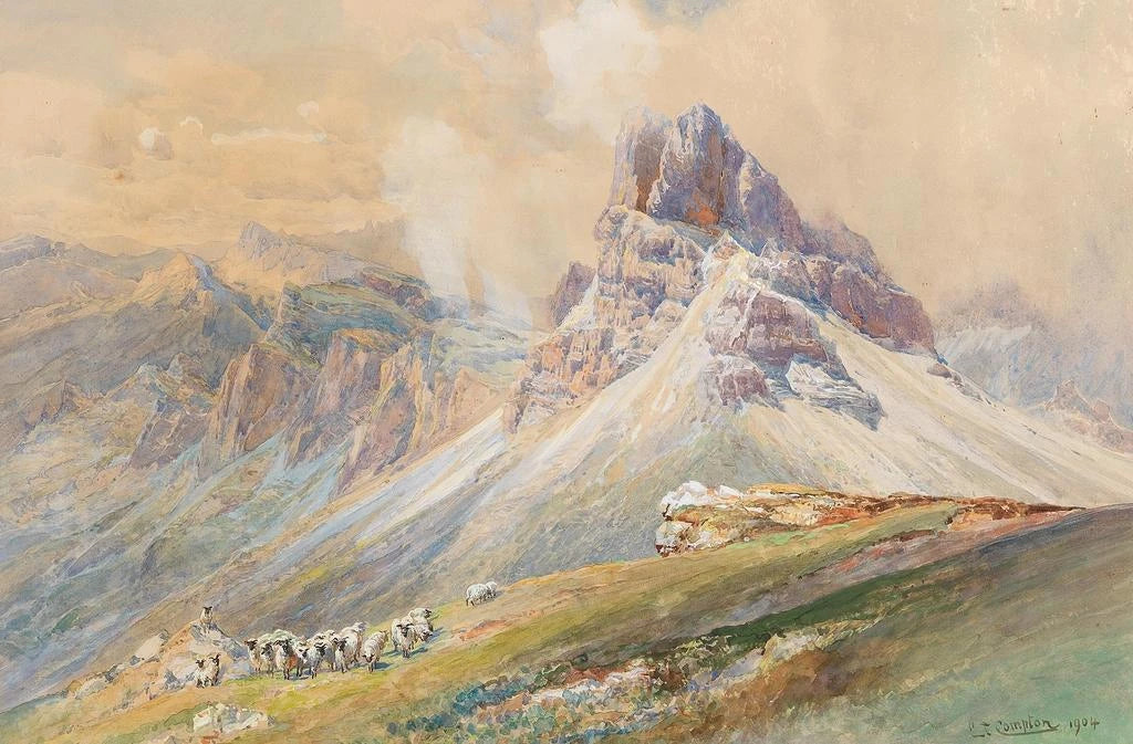 Edward Theodore Compton, nato nel 1849, è un artista britannico riconosciuto per i suoi paesaggi alpini. Influenzato dal movimento romantico e dall'impressionismo, ha saputo sviluppare uno stile unico che combina precisione ed emozione. I suoi viaggi attraverso le Alpi hanno alimentato la sua ispirazione, permettendogli di trascrivere la bellezza selvaggia di queste montagne. Compton è stato anche un fervente difensore della natura, e le sue opere testimoniano il suo impegno per la conservazione dei paesaggi naturali. Il suo lascito artistico perdura, facendolo diventare una figura imprescindibile nella storia della pittura di paesaggio.