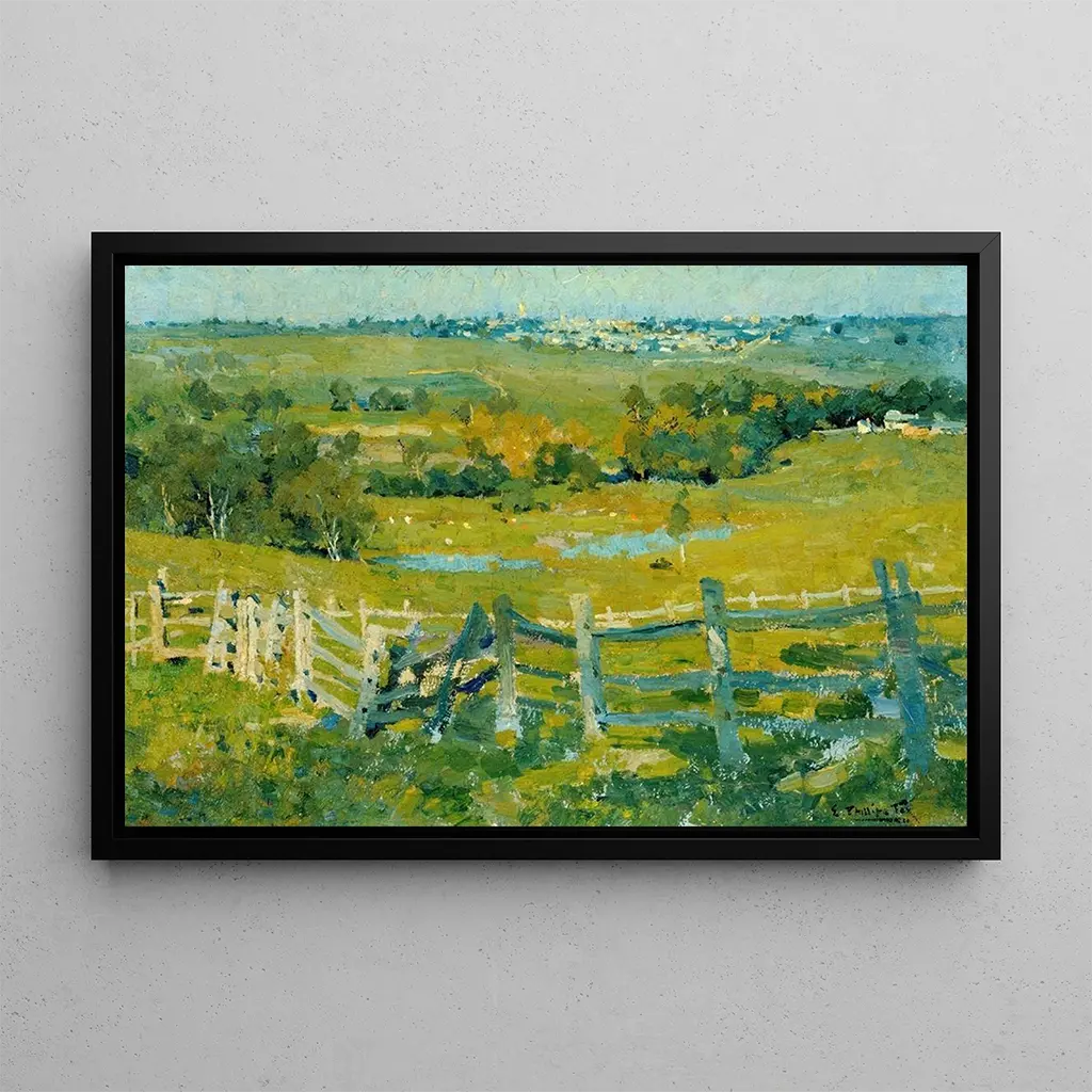Heidelberg : un'armonia tra natura e architettura La tela "Heidelberg" di E. Phillips Fox ci immerge in un paesaggio incantato dove la bellezza della natura si sposa con l'architettura maestosa. I colori morbidi e luminosi evocano un'atmosfera pacifica, mentre i dettagli minuziosi degli edifici e degli alberi creano una sensazione di profondità. La tecnica impressionista di Fox, con i suoi colpi di pennello fluidi, conferisce leggerezza alla scena, invitando lo spettatore a immergersi in questo momento sospeso. Questa stampa d'arte, vera ode alla serenità, incarna un equilibrio perfetto tra il mondo naturale e l'intervento umano. E. Phillips Fox : un maestro dell'impressionismo australiano E. Phillips Fox, figura emblematica dell'impressionismo australiano, ha saputo catturare l'essenza della luce e dei paesaggi. Nato nel 1866, è stato influenzato dai grandi maestri europei, in particolare Monet e Renoir, durante i suoi soggiorni in Francia. La sua opera si distingue per una palette ricca e una sensibilità alla luce, caratteristiche del periodo impressionista. Fox ha svolto un ruolo cruciale nell'introduzione di questo stile in Australia, lasciando un'eredità duratura che continua a ispirare gli artisti contemporanei. "Heidelberg" è un esempio perfetto del suo talento e del suo impegno verso la bellezza naturale. Un'acquisizione decorativa con molteplici vantaggi La riproduzione della stampa d'arte "Heidelberg" è una scelta ideale per abbellire la vostra casa, che sia nel soggiorno, in uno studio o in una camera da letto. La qualità di stampa e la fedeltà ai colori originali ne fanno un pezzo centrale che cattura lo sguardo e suscita ammirazione. Integrando questa tela nella vostra decorazione, portate un tocco di eleganza e serenità nel vostro spazio. L'attrattiva estetica di questa opera, combinata alla sua storia e all'atmosfera, la rende un'aggiunta preziosa a qualsiasi collezione d'arte.