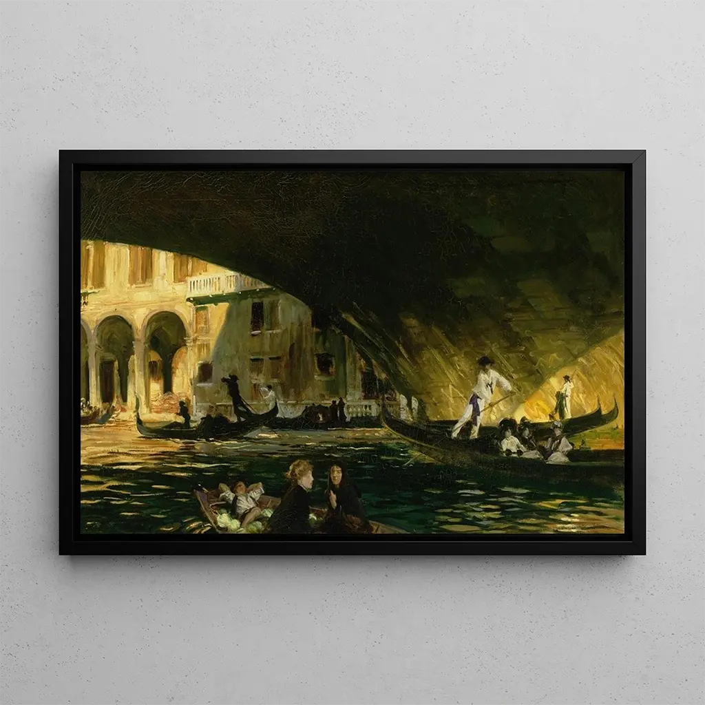 Le Rialto, Venezia : una scena vibrante della vita veneziana Il quadro "Le Rialto, Venezia" di John Singer Sargent cattura con maestria l'effervescenza e la bellezza della celebre piazza veneziana. I colori caldi e luminosi si mescolano armoniosamente, creando un'atmosfera vivace e dinamica. Sargent, maestro del ritratto e della luce, utilizza pennellate fluide per dare vita ai personaggi che animano questa scena. Le gondole scivolano dolcemente sull'acqua, mentre gli edifici storici si ergono maestosi sullo sfondo, invitando lo spettatore a immergersi nell'atmosfera unica di Venezia. John Singer Sargent : un virtuoso della pittura ad olio John Singer Sargent, nato nel 1856, è un pittore americano di origine italiana, riconosciuto per il suo talento eccezionale nel ritratto e nei paesaggi. Influenzato dai maestri europei, Sargent ha saputo sviluppare uno stile unico, combinando realismo e impressionismo. La sua carriera, che si estende dalla fine del XIX secolo all'inizio del XX, è segnata da opere emblematiche che testimoniano la sua abilità nel catturare la luce e il movimento. "Le Rialto" si inserisce in un periodo in cui Sargent esplora la vita urbana, rivelando il suo interesse per le scene di vita quotidiana e le interazioni umane. Una riproduzione decorativa con molteplici vantaggi La riproduzione di "Le Rialto, Venezia" è una scelta perfetta per abbellire il vostro interno, che sia in un soggiorno, uno studio o una camera da letto. La qualità di stampa e la fedeltà ai colori originali fanno di questa tela un vero e proprio elemento decorativo. L'opera aggiunge un tocco di eleganza e cultura al vostro spazio, evocando la magia di Venezia. Con il suo indiscusso fascino estetico, questa stampa d'arte saprà conquistare i vostri ospiti e arricchire la vostra collezione artistica, offrendovi al contempo uno sguardo quotidiano sulla bellezza senza tempo di questa città iconica.