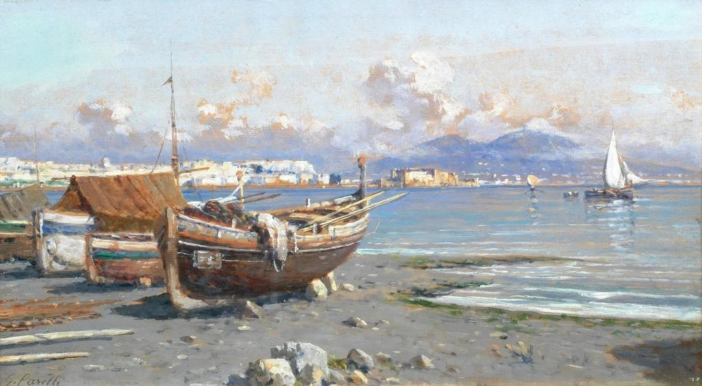 La Baia di Napoli: un dipinto vibrante di vita e luce La Baia di Napoli, opera emblematica di Giuseppe Carelli, trasporta lo spettatore nel cuore di un paesaggio mediterraneo bagnato dalla luce. I colori vivaci, che vanno dai blu profondi del mare ai verdi lussureggianti delle colline, creano un'atmosfera vivace e incantata. La tecnica di Carelli, caratterizzata da pennellate fluide e da un'attenta cura dei dettagli, dà vita a ogni elemento del quadro, dalle vele che navigano pacificamente alle case colorate che costeggiano la baia. Quest'opera invita alla contemplazione, evocando ricordi di vacanze e di serenità. Giuseppe Carelli: un maestro del paesaggio italiano Giuseppe Carelli, attivo nel XIX secolo, è riconosciuto per i suoi paesaggi marini che catturano la bellezza della costa italiana. Influenzato dal movimento romantico, ha saputo unire realismo e poesia nelle sue opere. Carelli ha trascorso gran parte della sua carriera a Napoli, dove è stato ispirato dalla luce unica della regione e dalla vita quotidiana dei pescatori. Il suo stile, allo stesso tempo vibrante e delicato, ha segnato la sua epoca e continua a influenzare gli artisti contemporanei. La Baia di Napoli è uno dei suoi capolavori, illustrando perfettamente il suo talento nel rendere omaggio alla bellezza naturale del suo paese. Una riproduzione decorativa con molteplici virtù La riproduzione de La Baia di Napoli è un pezzo decorativo ideale per arricchire il vostro interno, che sia in un salotto, un ufficio o una camera da letto. La qualità di stampa garantisce una fedeltà notevole ai colori e ai dettagli dell'opera originale, portando un tocco di eleganza e serenità nel vostro spazio. Questo quadro, con il suo indiscusso fascino estetico, stimola conversazioni e invita all'evasione. Scegliendo questa stampa d'arte, optate per una decorazione senza tempo che saprà conquistare i vostri ospiti offrendo anche un momento di contemplazione quotidiana.