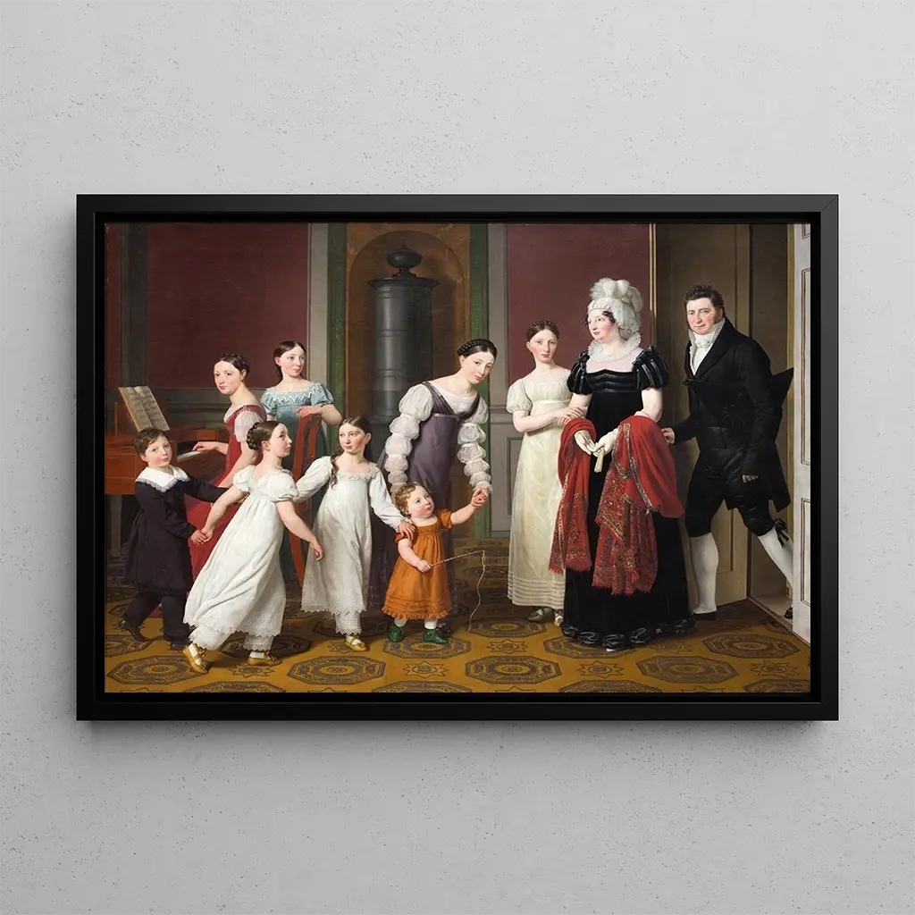 In "La Famiglia Nathanson", Christoffer Wilhelm Eckersberg dipinge una scena familiare intrisa di dolcezza e complicità. I membri della famiglia sono riuniti in un ambiente accogliente, dove ogni dettaglio, dalle espressioni dei volti agli abiti, testimonia l'armonia che regna tra loro. I colori pastello e la luce soffusa creano un'atmosfera rilassante, invitando lo spettatore a condividere questo momento di intimità. La composizione equilibrata, centrata sulle interazioni, permette di percepire il calore dei legami familiari. Questa stampa d'arte del quadro "La Famiglia Nathanson" è una celebrazione dell'amore e della convivialità.