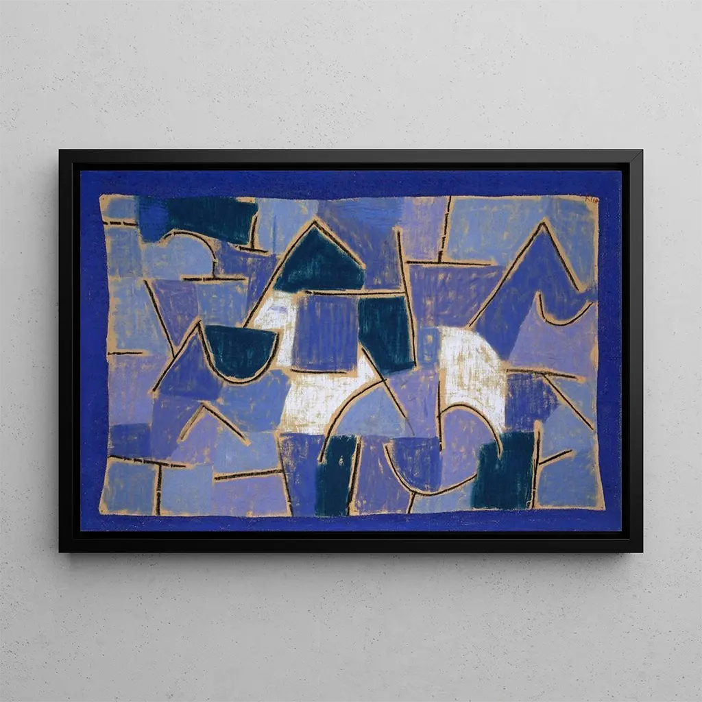 La stampa d'arte Nuit bleue di Paul Klee ci trasporta in un universo onirico dove i colori si intrecciano per creare un'atmosfera misteriosa. Questo quadro, con le sue sfumature di blu profondo e le sue forme astratte, evoca sogni ed emozioni. Klee, maestro dell'espressionismo, utilizza linee fluide e motivi organici per catturare l'essenza della notte. L'opera sembra vibrare di un'energia interiore, invitando lo spettatore a immergersi nelle sue profondità. Ogni elemento della composizione contribuisce a una sensazione di calma e contemplazione, facendo di questa tela un vero invito all'evasione.