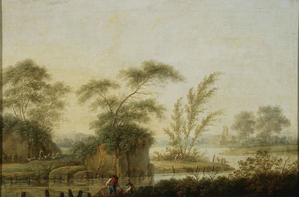 Paesaggio, pescatori al ruscello - Jan Ciso