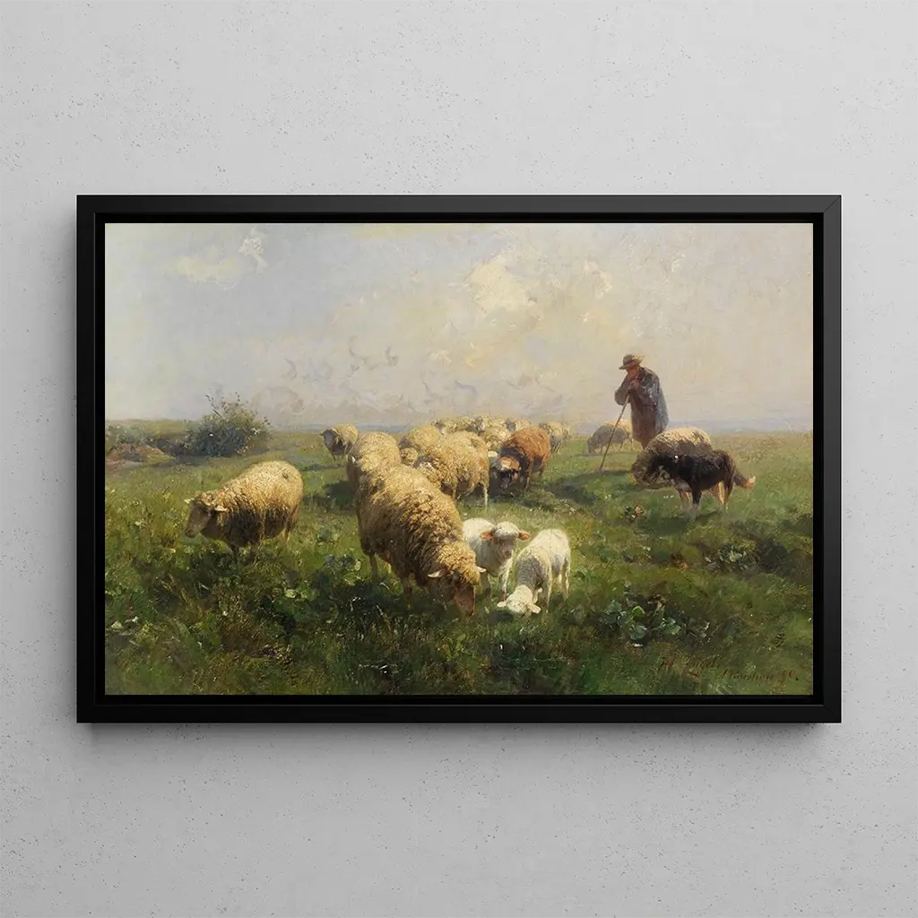 Pâturage ensoleillé : un'ode alla serenità bucolica In "Pâturage ensoleillé", Heinrich von Zügel ci trasporta nel cuore di un paesaggio pastorale dove la luce dorata del sole accarezza i campi verdi. I colori vibranti dell'opera, che vanno dai verdi vivaci ai gialli caldi, creano un'atmosfera tranquilla e accogliente. La tecnica dell'artista, che mescola realismo e impressionismo, dà vita a ogni filo d'erba e a ogni nuvola nel cielo. L'opera invita a una contemplazione serena, evocando la bellezza semplice della natura e la tranquillità di un momento sospeso nel tempo. Heinrich von Zügel : un maestro del paesaggio animale Heinrich von Zügel, pittore tedesco del XIX secolo, è riconosciuto per le sue rappresentazioni della natura e degli animali. Influenzato dal movimento romantico, ha saputo catturare l'armonia tra l'uomo e la natura. La sua carriera si estende su diversi decenni, durante i quali ha sviluppato uno stile unico, che combina precisione e poesia. Zügel è stato anche influenzato dai suoi viaggi attraverso l'Europa, che hanno arricchito la sua tavolozza e la sua visione artistica. La sua opera "Pâturage ensoleillé" testimonia il suo talento nel immortalare scene rurali, rendendolo una figura imprescindibile dell’arte animale. Una riproduzione decorativa con molteplici vantaggi La riproduzione di "Pâturage ensoleillé" è un pezzo decorativo ideale per abbellire il tuo soggiorno, ufficio o camera da letto. La qualità di stampa e la fedeltà ai colori originali ne fanno un quadro affascinante che cattura lo sguardo. Integrando questa tela nel tuo spazio, porti un tocco di serenità e natura, beneficiando di un'attrattiva estetica indiscutibile. Che si tratti di creare un'atmosfera calda o di ispirare la tranquillità, questa opera si adatta a tutti gli stili di interior design, rendendola una scelta saggia per ogni decorazione.