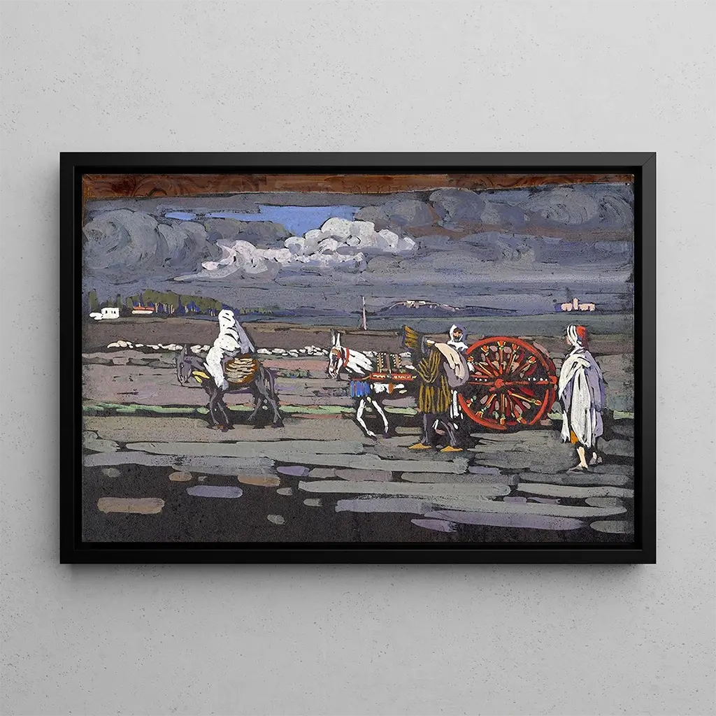 Route de campagne : un viaggio nel cuore del colore La stampa d'arte Route de campagne di Wassily Kandinsky ci immerge in un paesaggio vibrante, dove le forme geometriche e i colori vivaci si uniscono per creare un'armonia visiva unica. Questo quadro, intriso dello spirito astratto di Kandinsky, evoca una sensazione di movimento e libertà. Le tonalità calde e fredde si intrecciano, mentre le linee sinuose disegnano un percorso che sembra invitare lo spettatore a esplorare questo mondo onirico. L'opera emana un'atmosfera gioiosa e meditativa, rivelando la capacità dell'arte di trascendere la realtà. Wassily Kandinsky : pioniere dell'astrazione Wassily Kandinsky, nato nel 1866, è riconosciuto come uno dei pionieri dell'arte astratta. Influenzato dal simbolismo e dal fauvismo, ha cercato di esprimere emozioni attraverso il colore e la forma, rompendo così con le convenzioni pittoriche della sua epoca. Kandinsky è stato un membro attivo del movimento Bauhaus, dove ha esplorato le relazioni tra arte e musica. Il suo periodo di creazione, principalmente all'inizio del XX secolo, ha segnato una svolta nella storia dell'arte, ponendo le basi dell'astrazione moderna. Route de campagne è un esempio perfetto del suo approccio innovativo e del desiderio di liberare l'arte dai vincoli figurativi. Una riproduzione decorativa con molteplici vantaggi Questa stampa d'arte del quadro Route de campagne è un'aggiunta ideale alla vostra decorazione d'interni, che si tratti di un soggiorno, di un ufficio o di una camera da letto. La sua estetica dinamica e colorata porterà un tocco di modernità e creatività nel vostro spazio. La qualità della stampa garantisce una fedeltà notevole ai dettagli e alle sfumature dell'opera originale, permettendo di apprezzare appieno l'universo artistico di Kandinsky. Integrando questa tela nel vostro ambiente, create un'atmosfera ispiratrice e stimolante, affermando al contempo la vostra passione per l'arte moderna.
