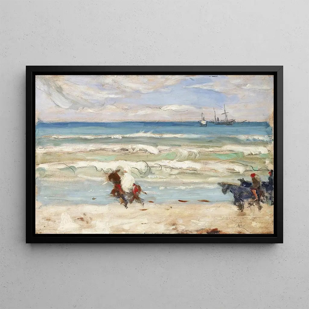 Scène de plage à Tanger : un souffle d'exotisme. Dans "Scène de plage à Tanger", James Wilson Morrice capture l'essence vibrante d'une journée ensoleillée sur la côte marocaine. Les couleurs chaudes et lumineuses, allant des jaunes dorés aux bleus profonds de la mer, évoquent une atmosphère estivale et joyeuse. La composition dynamique, avec des figures se prélassant sur le sable et des voiles de bateaux au loin, invite à l'évasion. Morrice, avec sa technique impressionniste, joue habilement avec la lumière et les ombres, créant une sensation de mouvement et de vie. Cette œuvre est une véritable invitation à découvrir les plaisirs simples de la vie en bord de mer. James Wilson Morrice : un pionnier du mouvement impressionniste. James Wilson Morrice, peintre canadien du début du XXe siècle, est souvent associé au mouvement impressionniste. Après avoir étudié à Paris, il a été influencé par des artistes tels que Monet et Renoir, intégrant leurs techniques dans son propre style. Morrice a voyagé à travers le monde, mais c'est sa fascination pour les paysages et les scènes de la vie quotidienne qui a marqué son œuvre. Sa capacité à capturer la lumière et l'atmosphère des lieux qu'il a visités, comme Tanger, témoigne de son talent unique. Bien que moins connu que certains de ses contemporains, son travail a eu un impact significatif sur l'art canadien et international. Une acquisition décorative aux multiples atouts. La reproduction de "Scène de plage à Tanger" est un ajout parfait à toute décoration intérieure. Que ce soit dans un espace de vie, un bureau ou une chambre, cette toile apporte une touche d'exotisme et de chaleur. La qualité de l'impression assure une fidélité remarquable aux couleurs éclatantes et aux détails de l'œuvre originale, permettant ainsi de profiter de l'atmosphère envoûtante de la scène. En intégrant ce tableau à votre décor, vous créez un espace accueillant et inspirant, tout en célébrant l'héritage artistique de James Wilson Morrice.