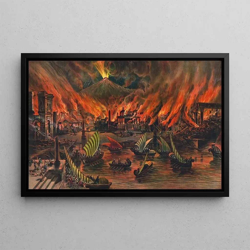 Il dipinto "Ultimo giorno di Pompei" di Henry J Pain è un'opera impressionante che cattura l'angoscia e la desolazione di una città sul punto di essere inghiottita dalle ceneri del Vesuvio. I colori caldi e scuri, mescolati a bagliori di luce, creano un'atmosfera drammatica e toccante. La composizione dinamica, in cui i personaggi sembrano congelati in un ultimo atto di disperazione, invita lo spettatore a percepire l'intensità di questo momento tragico. La tecnica dell'artista, che unisce realismo e romanticismo, dà vita a questa scena storica, trasformando l'angoscia in una bellezza tragica.