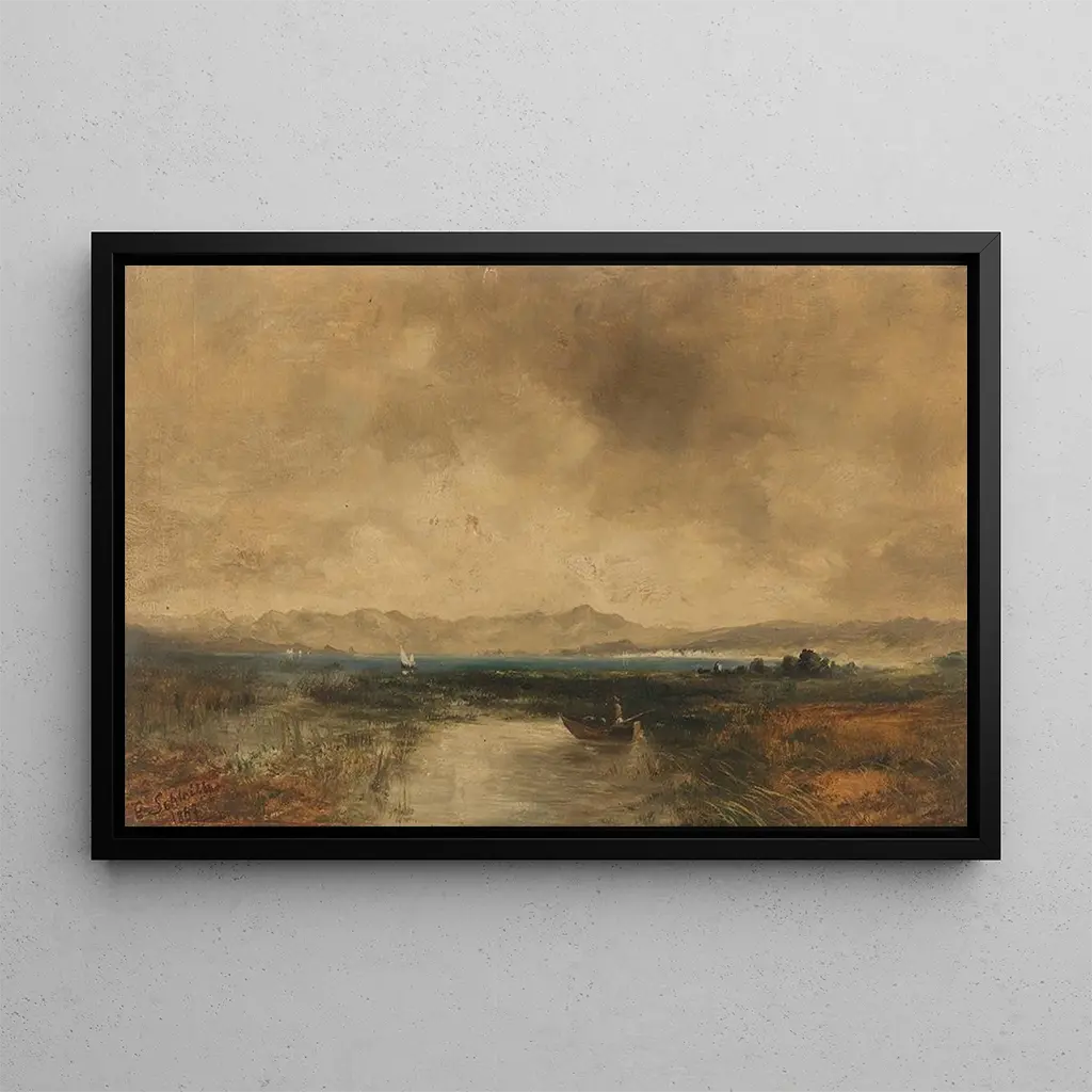 Vue del Chiemsee: un incantevole panorama delle Alpi bavaresi La stampa d'arte "Vue del Chiemsee" di Eduard Schleich l'Ancien presenta un paesaggio idilliaco in cui il lago Chiemsee si fonde armoniosamente con le maestose Alpi bavaresi. I colori vibranti della natura, dal verde rigoglioso al blu profondo del lago, creano un'atmosfera di tranquillità e meraviglia. La tecnica di Schleich, che combina realismo e impressionismo, permette di percepire la luce e l'aria fresca di questo luogo incantevole. Ogni elemento della composizione, dai riflessi sull'acqua alle montagne sullo sfondo, contribuisce a un'esperienza visiva immersiva. Eduard Schleich l'Ancien: un pioniere del paesaggio romantico Eduard Schleich l'Ancien, pittore tedesco del XIX secolo, è riconosciuto per i suoi paesaggi che catturano la bellezza naturale della Germania. Influenzato dal romanticismo, ha saputo tradurre le emozioni suscitate dalla natura attraverso le sue opere. Schleich ha trascorso una parte della sua vita esplorando laghi e montagne, cosa che ha profondamente segnato il suo stile. "Vue del Chiemsee" testimonia la sua abilità nel rappresentare la luce e l'atmosfera, facendolo un attore chiave nell'evoluzione della pittura di paesaggio in Europa. Un'acquisizione decorativa con molteplici vantaggi La riproduzione di "Vue del Chiemsee" è una scelta perfetta per portare un tocco di natura nella vostra decorazione d'interni. Che si tratti di un soggiorno, di un ufficio o di una camera da letto, questa stampa d'arte evoca pace e serenità. La qualità della riproduzione garantisce una fedeltà eccezionale ai colori e ai dettagli dell'opera originale, offrendo al contempo un indiscusso fascino estetico. Integrando questa tela nel vostro spazio, create un'atmosfera calda e accogliente, celebrando la bellezza dei paesaggi naturali.