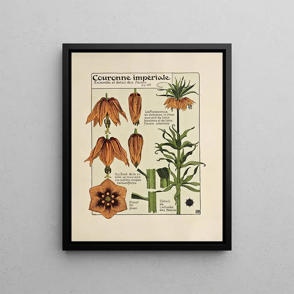 Corona imperiale : un simbolo di maestà e raffinatezza La riproduzione della Corona imperiale di Maurice Pillard Verneuil evoca un universo di splendore e delicatezza. I dettagli minuziosi di quest'opera, dove si mescolano motivi floreali e ornamenti dorati, catturano l’attenzione e invitano a una contemplazione attenta. I colori ricchi, dalle sfumature di verde smeraldo agli éclat dorati, creano un’atmosfera allo stesso tempo regale e rasserenante. La tecnica di Verneuil, che unisce pittura e arte decorativa, dà vita a questa corona, trasformandola in un vero capolavoro che trascende il tempo. Maurice Pillard Verneuil : un pioniere dell’Art Nouveau Maurice Pillard Verneuil, attivo alla fine del XIX secolo e all’inizio del XX secolo, è riconosciuto come un maestro dell’Art Nouveau. Influenzato dalle forme organiche e dai motivi naturali, ha saputo integrare questi elementi nelle sue creazioni, facendo di ogni opera un riflesso della sua epoca. Verneuil ha collaborato con artigiani e designer, contribuendo così all’emergere di uno stile che celebra la bellezza della natura e l’armonia delle forme. La sua capacità di fondere arte e artigianato ha lasciato un’impronta duratura nel mondo dell’arte decorativa. Un acquisto decorativo con molteplici vantaggi Optare per una stampa d'arte della Corona imperiale significa scegliere un pezzo decorativo che arricchirà qualsiasi spazio, che sia un soggiorno, un ufficio o una camera da letto. La qualità della stampa garantisce una fedeltà perfetta ai colori e ai dettagli dell’opera originale, offrendo così un’attrattiva estetica indiscutibile. Questo quadro, con la sua eleganza senza tempo, si integra armoniosamente in vari stili di arredamento, portando un tocco di raffinatezza e fascino nel vostro interno.