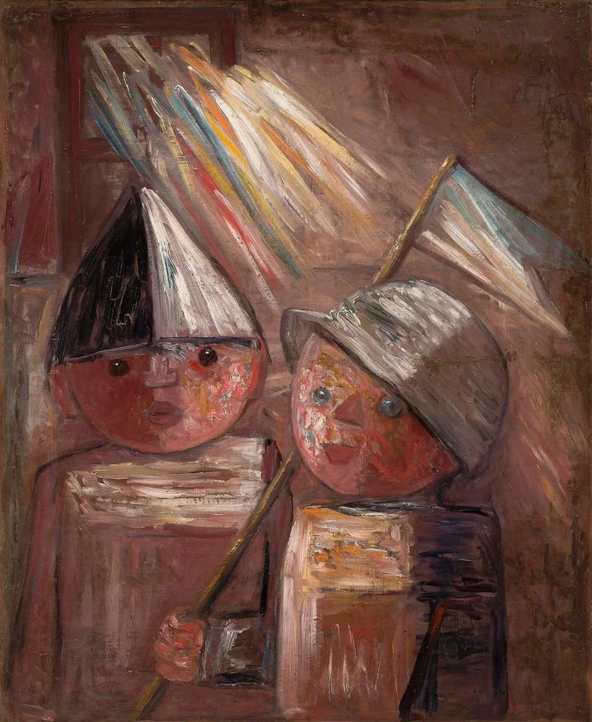 Due bambini con una bandiera - Tadeusz Makowski