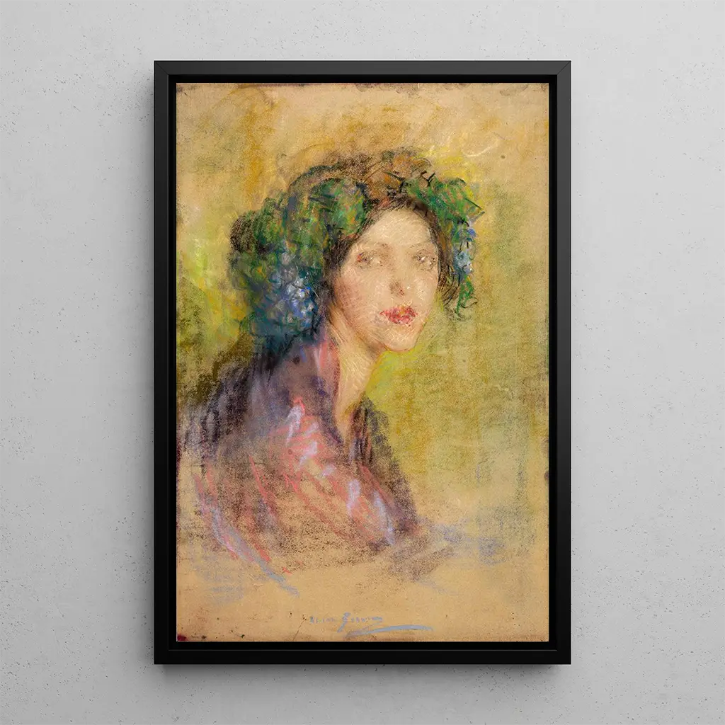 La stampa d'arte di Bacchante triste di Alice Pike Barney evoca un'atmosfera di dolcezza e tristezza. Questa tela, ricca di colori caldi e sfumature delicate, cattura l'essenza di una donna immersa in profonde riflessioni. I dettagli minuziosi del suo volto e della sua postura testimoniano una notevole maestria tecnica, mentre lo sfondo sfocato accentua la solitudine della figura centrale. L'uso della luce e dell'ombra crea una profondità emotiva, invitando lo spettatore a percepire la malinconia che emana da quest'opera.