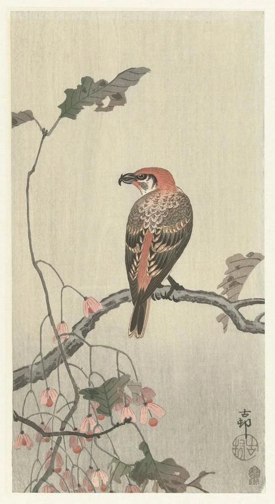 Ohara Koson, actif au début du XXe siècle, est reconnu comme l'un des grands maîtres du ukiyo-e, un art traditionnel japonais. Influencé par les paysages et la faune de son pays, Koson a su allier tradition et modernité dans ses œuvres. Ses représentations d'oiseaux et de fleurs sont particulièrement prisées, témoignant de son habileté à capturer la beauté fugace de la nature. À une époque où le Japon s'ouvrait à l'Occident, Koson a joué un rôle clé dans la préservation et la réinvention de cet art, faisant de lui une figure incontournable de l'histoire de l'art japonais.