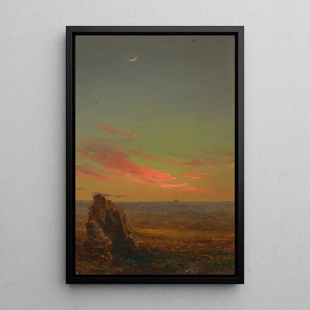 Frederic Edwin Church, l'un des principaux représentants de l'Hudson River School, a marqué l'histoire de l'art américain grâce à ses paysages grandioses et évocateurs. Actif au XIXe siècle, il a été influencé par les idées romantiques de son époque, cherchant à exprimer la beauté sublime de la nature. Ses voyages à travers l'Amérique et au-delà ont enrichi sa palette et sa vision artistique. "Coucher de soleil près de Rome" est un exemple parfait de son style, où la lumière et la couleur jouent un rôle central, témoignant de l'importance de la nature dans l'art et la culture de son temps.