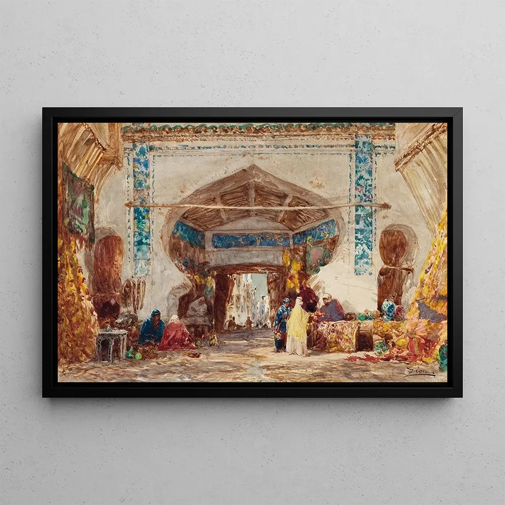 Bazar Constantinople : un viaggio nel cuore dei bazar orientali "Bazar Constantinople" è un'opera che trasporta lo spettatore nell'effervescenza dei mercati orientali. I colori caldi e i motivi ricchi evocano la diversità delle merci e l'animazione dei luoghi. La tecnica di pittura, probabilmente a olio su tela, permette di catturare i dettagli minuziosi dei tessuti e degli oggetti esposti, creando un'atmosfera vibrante e immersiva. Ogni elemento della composizione sembra raccontare una storia, invitando alla scoperta e all'ammirazione all'interno di questo bazar animato. Bazar Constantinople : una testimonianza dell'Orientalismo L'artista Bazar Constantinople si inserisce nel movimento orientalista del XIX secolo, che cercava di rappresentare le culture orientali attraverso il prisma dell'Occidente. Questo stile, spesso intriso di romanticismo ed esotismo, è stato influenzato dai viaggi e dai racconti degli esploratori dell'epoca. L'opera di Bazar Constantinople riflette questa fascinazione per l'Oriente, evidenziando al contempo la ricchezza culturale e artistica di questa regione. Catturando l'essenza dei bazar, l'artista contribuisce a una migliore comprensione di questi spazi carichi di storia. Un acquisto decorativo con molteplici vantaggi La riproduzione di "Bazar Constantinople" è un pezzo decorativo che porterà un tocco di esotismo nel vostro interno. Che sia in un soggiorno, in uno studio o in una camera da letto, questa tela saprà conquistare con i suoi colori vivaci e la sua atmosfera calda. La qualità della stampa garantisce fedeltà ai dettagli dell'opera originale, permettendo di godere appieno del suo fascino estetico. Scegliendo questa opera, offrite al vostro spazio un invito al viaggio e alla scoperta, arricchendo al contempo il vostro arredamento con un pezzo d'arte unico.