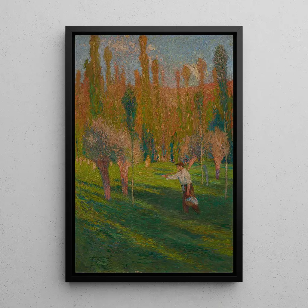 Faucheur rientrando dal lavoro Il mietitore : un omaggio alla vita rurale In questa opera vibrante, Henri Martin cattura la bellezza semplice e autentica del lavoro nei campi. La stampa d'arte "Il mietitore" rappresenta un uomo che rientra a casa dopo una lunga giornata di fatica, i tratti segnati dalla stanchezza ma anche dalla soddisfazione del dovere compiuto. I colori caldi, che vanno dall'oro dei grani al verde dei campi, creano un'atmosfera allo stesso tempo pacifica e dinamica. La tecnica impressionista di Martin, con i suoi tocchi di pennello fluidi ed espressivi, dà vita alla scena, invitando lo spettatore a percepire il calore del tramonto e il profumo delle mietiture. Henri Martin : un maestro del post-impressionismo Henri Martin, nato nel 1860, è un pittore francese che ha saputo imporsi nel movimento post-impressionista. Influenzato da artisti come Claude Monet e Paul Cézanne, sviluppa uno stile unico che unisce luminosità e colore. Nel corso della sua carriera, Martin ha esplorato vari temi, ma il suo attaccamento alla natura e alla vita rurale rimane predominante. La sua opera "Il mietitore" si inserisce in un periodo in cui l'artista cerca di celebrare la bellezza del quotidiano, testimonianza di un profondo rispetto per il lavoro dei contadini. Il suo patrimonio artistico continua a ispirare molti artisti contemporanei. Una riproduzione decorativa con molteplici vantaggi La riproduzione della stampa d'arte "Il mietitore" di Henri Martin costituisce una scelta decorativa ideale per diversi spazi, che si tratti di un soggiorno accogliente, di un ufficio stimolante o di una camera rilassante. La qualità di stampa garantisce una fedeltà notevole ai colori e ai dettagli dell'opera originale, permettendo di godere appieno dell'atmosfera bucolica che essa trasmette. Integrando questa tela nella tua decorazione, porti un tocco di eleganza e serenità, celebrando allo stesso tempo l'arte francese. Questa stampa d'arte non è solo un elemento decorativo, ma anche un invito alla contemplazione e all'apprezzamento della bellezza del mondo rurale.
