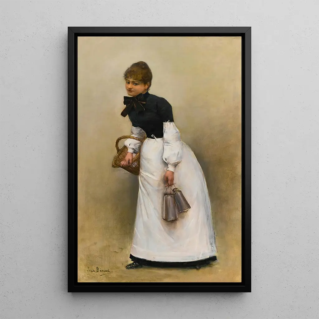 Jean Béraud, attivo alla fine del XIX secolo, è riconosciuto per le sue rappresentazioni della vita parigina. Influenzato dal movimento impressionista, ha saputo sviluppare uno stile proprio, combinando realismo e tocchi di poesia. Le sue opere, spesso intrise di nostalgia, riflettono la società del suo tempo, catturando scene di vita quotidiana con una sensibilità unica. Béraud è stato anche un membro attivo del Salon, dove ha esposto le sue stampe d'arte, rafforzando così la sua reputazione. "La Servante" si inserisce in questa linea, illustrando il suo interesse per i personaggi ordinari e il loro ambiente.