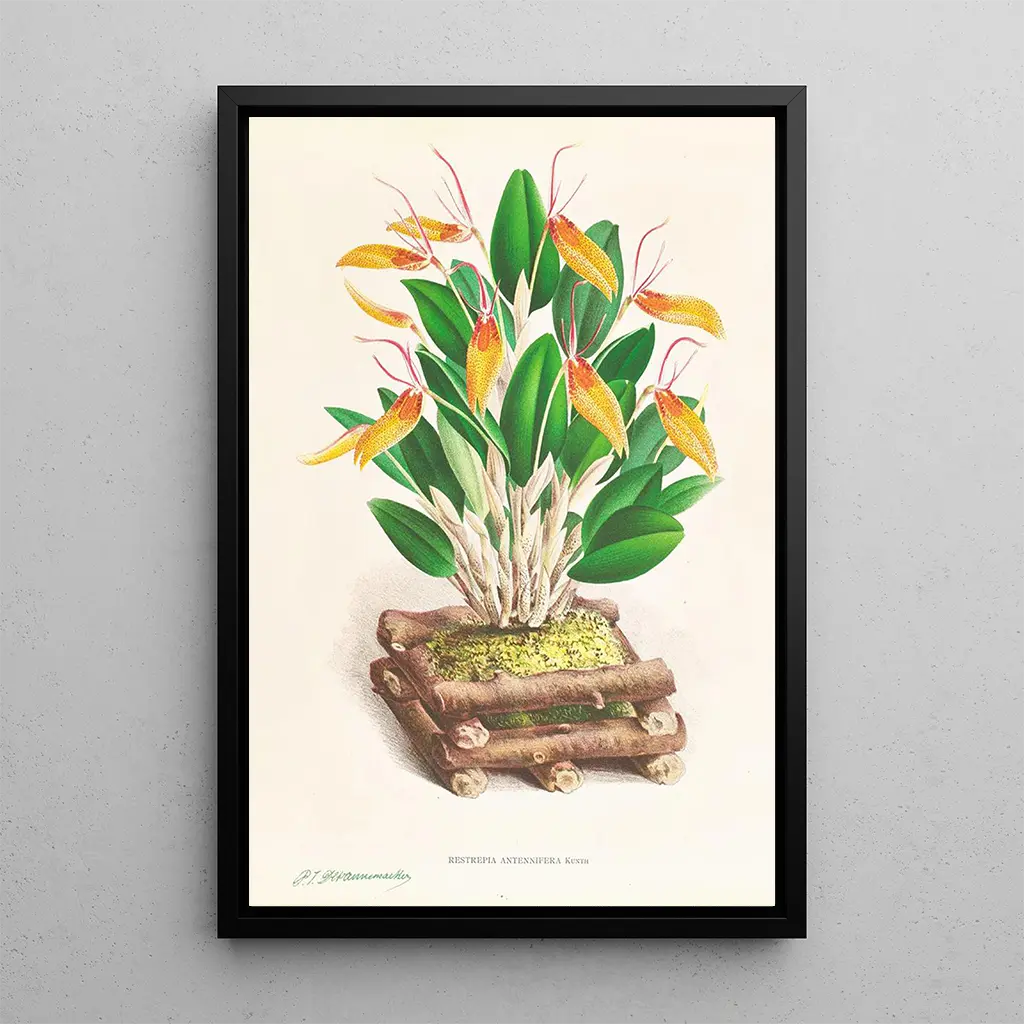 Restrepia antennifera : un viaggio nel cuore della biodiversità La riproduzione di Restrepia antennifera ci trasporta in un mondo in cui la natura si esprime con brillantezza. Le tonalità vivaci e le forme uniche di questa orchidea sono abilmente catturate dall’artista, rivelando la ricchezza della biodiversità. La tela emana un’atmosfera vivace e dinamica, invitando all’ammirazione. Ogni dettaglio, dai petali delicati alle sfumature vibranti, testimonia la passione dell’artista per la botanica. Questa stampa d'arte è molto più di una semplice rappresentazione; è una celebrazione della bellezza naturale che ci circonda. Jean Jules Linden : un pioniere dell’arte floreale Jean Jules Linden, figura emblematica del XIX secolo, ha saputo unire arte e botanica con maestria. In qualità di esploratore e illustratore, ha viaggiato per il mondo alla ricerca delle più belle specie floreali. La sua opera è caratterizzata da uno stile distintivo, che combina rigore scientifico e sensibilità artistica. Linden ha svolto un ruolo chiave nella diffusione delle conoscenze sulle orchidee, affascinando gli appassionati d’arte e di natura. Il suo lavoro continua a ispirare, testimonianza dell’importanza della natura nell’arte e nella cultura. Una riproduzione decorativa con molteplici vantaggi La riproduzione di Restrepia antennifera è una scelta decorativa che saprà conquistare tutti gli appassionati di botanica e d’arte. Ideale per un soggiorno, un ufficio o una camera da letto, questa stampa d'arte aggiunge un tocco di esotismo e colore alla tua casa. La qualità di stampa garantisce una fedeltà notevole ai dettagli dell’opera originale, facendo di questa riproduzione un vero e proprio gioiello decorativo. Inserendo questa opera nel tuo spazio, inviti la bellezza della natura a sbocciare nella tua casa, aggiungendo al contempo una dimensione artistica alla tua decorazione d’interni.