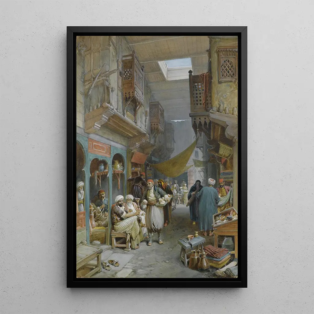 Bazar Suez : un quadro vibrante di vita e di colori In "Bazar Suez", William Simpson ci immerge nel cuore di un vivace mercato egiziano, dove i colori vivaci e i dettagli minuziosi catturano l'essenza della vita quotidiana. Le bancarelle sono piene di merci esotiche, mentre i personaggi, vestiti con costumi tradizionali, si dedicano alle attività in un'atmosfera di commercio e convivialità. La tecnica di Simpson, che combina acquerello e disegno, crea una profondità e una luminosità che rendono la scena quasi palpabile. Questo quadro invita a un'esplorazione visiva, dove ogni elemento racconta una storia, e dove l'occhio dello spettatore viene trascinato in un vortice di sensazioni. William Simpson : un testimone dell'Oriente vittoriano William Simpson, pittore e illustratore britannico dell'Ottocento, è noto per le sue rappresentazioni vivide della vita orientale. Viaggiatore infaticabile, è riuscito a catturare l'anima dei paesi che ha visitato, in particolare l'Egitto e il Medio Oriente. Il suo stile, influenzato dal realismo e dall'impressionismo, si distingue per un'attenzione particolare ai dettagli e una palette di colori vibranti. Simpson ha svolto un ruolo chiave nella documentazione delle culture orientali in un'epoca in cui l'Occidente iniziava a interessarsi a queste terre lontane. La sua opera, "Bazar Suez", testimonia questa fascinazione e il suo impegno nel rappresentare la diversità culturale del suo tempo. Un acquisto decorativo con molteplici vantaggi La riproduzione di "Bazar Suez" è un elemento decorativo ideale per arricchire il vostro interno, che sia in un soggiorno, uno studio o una camera da letto. La qualità di stampa e la fedeltà ai colori originali fanno di questa tela un vero capolavoro da contemplare. Aggiungendo questa opera alla vostra decorazione, portate un tocco di esotismo e di storia nel vostro spazio, stimolando anche la curiosità dei vostri ospiti. Con il suo indiscusso fascino estetico, questa riproduzione del quadro di William Simpson è una scelta saggia per chi desidera unire arte e decorazione.