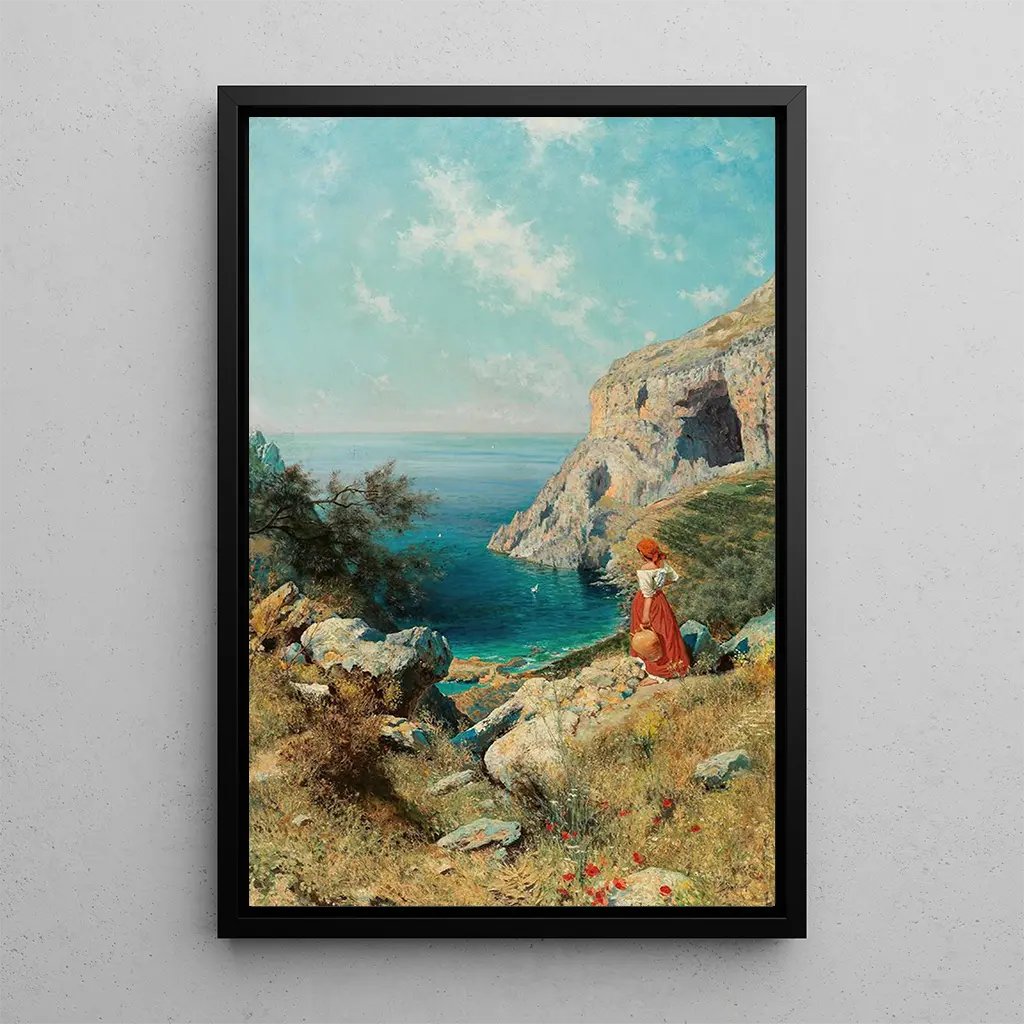 Capri : un'evasione verso la bellezza naturale La stampa d'arte di Capri di Paul Schreiber evoca un'atmosfera di serenità e contemplazione. Le tonalità morbide di blu e verde si mescolano armoniosamente, rappresentando le acque cristalline che circondano l'isola. La tecnica di Schreiber, che combina tocchi di pennello delicati e dettagli minuziosi, crea una sensazione di profondità e movimento. L'opera invita lo spettatore a immergersi in un mondo in cui natura e arte si incontrano, offrendo un rifugio visivo lontano dal tumulto quotidiano. Paul Schreiber : un maestro di luce e paesaggi Paul Schreiber, attivo all'inizio del XX secolo, è riconosciuto per i suoi paesaggi luminosi e poetici. Influenzato dagli impressionisti, ha saputo catturare la bellezza dei paesaggi naturali con un approccio unico. Il suo lavoro riflette un periodo in cui l'arte si liberava dalle convenzioni accademiche, abbracciando una visione più personale ed emotiva. Schreiber è riuscito a imporsi nel mondo dell'arte grazie alla sua capacità di tradurre la luce e l'atmosfera in una tavolozza vibrante, rendendolo un artista essenziale della sua epoca. Un acquisto decorativo con molteplici vantaggi La stampa d'arte di Capri è un pezzo decorativo che si integra perfettamente in diversi spazi, che sia in un soggiorno, un ufficio o una camera da letto. La qualità di stampa e la fedeltà all'opera originale garantiscono un fascino estetico indiscutibile. Scegliendo questa opera, porti un tocco di natura e tranquillità nel tuo interno, arricchendo la tua decorazione con un'opera d'arte che suscita evasione e sogno. Questa tela è molto più di un semplice elemento decorativo, è un invito alla contemplazione quotidiana.
