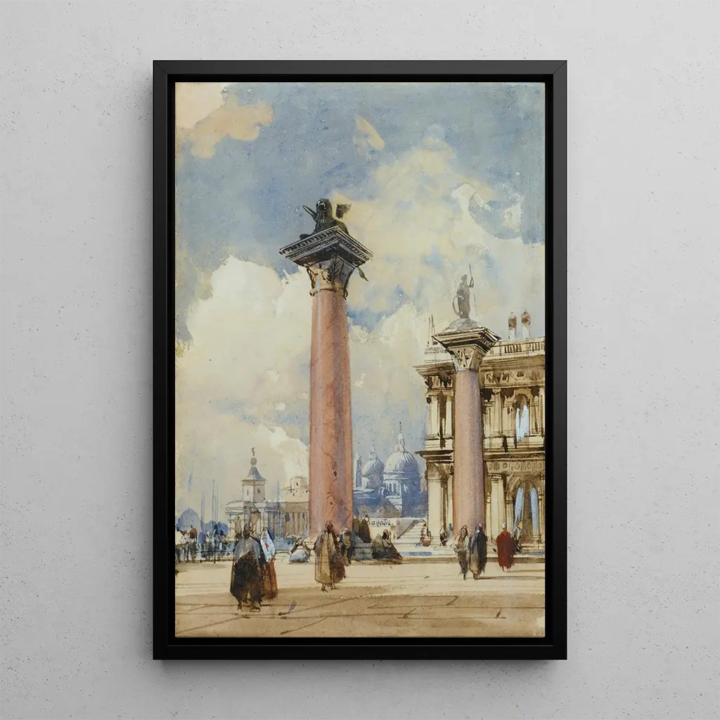 La Piazzetta Venise : una scena di vita vibrante La Piazzetta Venise, dipinta da Richard Parkes Bonington, cattura l'effervescenza e la bellezza di uno dei luoghi più emblematici della città. I colori vivaci della tela, che vanno dalle tonalità calde degli edifici ai riflessi scintillanti sull'acqua, creano un'atmosfera vivace e dinamica. I personaggi, vestiti in modo tipico, aggiungono una dimensione umana a questa scena, rendendo palpabile l'animazione della vita veneziana. Ogni dettaglio, dal movimento delle vele alle ombre proiettate dal sole, testimonia l'abilità di Bonington nel catturare l'istante presente, facendo di questa stampa d'arte della La Piazzetta Venise una vera finestra sul passato. Richard Parkes Bonington : un virtuoso del paesaggio urbano Richard Parkes Bonington, attivo all'inizio del XIX secolo, è riconosciuto per il suo talento eccezionale nel campo del paesaggio e del ritratto. Cresciuto in un ambiente artistico, è stato influenzato dai grandi maestri francesi, in particolare durante i suoi soggiorni in Francia. Il suo stile romantico, caratterizzato da un'attenzione minuziosa ai dettagli e da un uso audace del colore, ha segnato la sua epoca. La Piazzetta Venise illustra perfettamente il suo approccio, mescolando la rappresentazione realistica a un'interpretazione poetica della vita urbana. Bonington è riuscito a immortalare la magia di Venezia, facendo di questa opera un prezioso testimone del suo genio artistico. Una riproduzione decorativa con molteplici vantaggi La riproduzione di La Piazzetta Venise è un'aggiunta perfetta a qualsiasi decorazione d'interni, che si tratti di un soggiorno, di un ufficio o di una camera da letto. La qualità della stampa d'arte garantisce una fedeltà eccezionale ai colori e ai dettagli dell'opera originale, offrendo al contempo un tocco di eleganza e cultura al vostro spazio. Scegliendo questo quadro, doni al tuo interno un'atmosfera calda e accogliente, suscitando anche l'ammirazione dei tuoi ospiti. Questa tela, con il suo fascino senza tempo, è molto più di una semplice decorazione; è un invito a viaggiare nel tempo e a scoprire la bellezza di Venezia attraverso gli occhi di Richard Parkes Bonington.