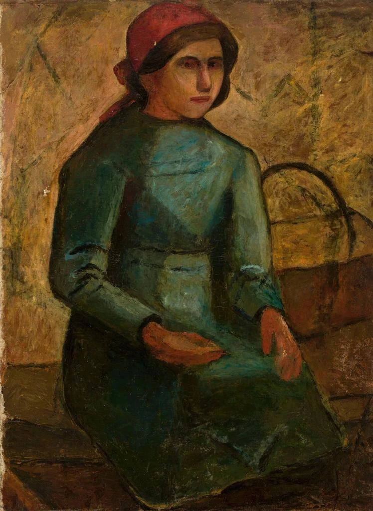 Stampa d'arte | Ragazza in abito verde con cesta - Tadeusz Makowski