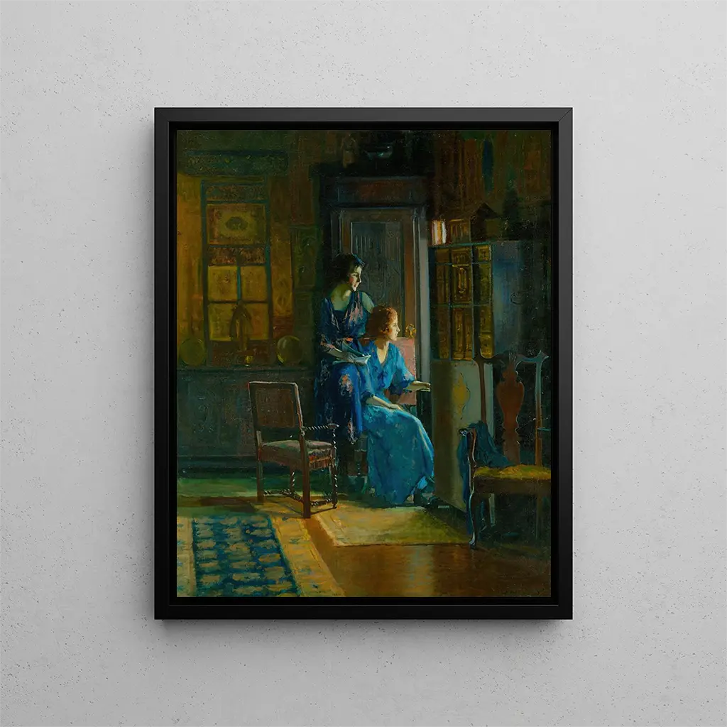 Reproduction À la fenêtre - Francis Coates Jones – Introduzione coinvolgente L'opera "À la fenêtre" di Francis Coates Jones si inserisce in un momento cruciale della storia dell'arte americana, dove la luce e l'intimità domestica si incontrano in un'armonia delicata. Questo quadro, che cattura una scena interna intrisa di serenità, invita lo spettatore a una contemplazione silenziosa. La composizione evoca un'atmosfera da sogno, dove il gioco di ombre e luci si mescola alla dolcezza dei colori, offrendo così uno scorcio sulla vita quotidiana alla fine del XIX secolo. Approfondendo questa opera, si scopre non solo un capolavoro visivo, ma anche una finestra aperta sull'anima del suo tempo. Stile e unicità dell’opera Francis Coates Jones, attraverso "À la fenêtre", dimostra una padronanza notevole del chiaroscuro, una tecnica che conferisce al suo quadro una profondità emotiva. Le sfumature di luce che filtrano dalla finestra creano un contrasto sorprendente con le ombre che avvolgono la figura femminile, accentuandone così l'isolamento e la contemplazione. La donna, assorta nei suoi pensieri, diventa il simbolo della malinconia e della riflessione, rafforzato dalla dolcezza delle tonalità pastello utilizzate. La meticolosità con cui Jones ha reso le texture, dai drappeggi dell'abito ai dettagli dell'arredamento, testimonia la sua attenzione al realismo e il desiderio di catturare la bellezza effimera dell'istante. Questo quadro trascende il semplice ritratto per diventare un vero studio psicologico, dove ogni elemento contribuisce alla narrazione visiva. L’artista e la sua influenza Francis Coates Jones, nato nel 1857, fu influenzato dai movimenti artistici del suo tempo, in particolare il realismo e l'impressionismo. Formatosi all'Accademia di Belle Arti della Pennsylvania, seppe integrare le tecniche dei suoi predecessori sviluppando uno stile personale unico. Il suo interesse per le scene di vita quotidiana e i ritratti di donne testimoniano una sensibilità particolare verso il mondo femminile e le sue sfumature. Jones fu anche un membro attivo della comunità artistica, partecipando a numerose esposizioni e contribuendo all'evoluzione dell'arte americana. La sua opera continua a ispirare molti artisti contemporanei, che lo vedono come un precursore nella rappresentazione delle emozioni umane