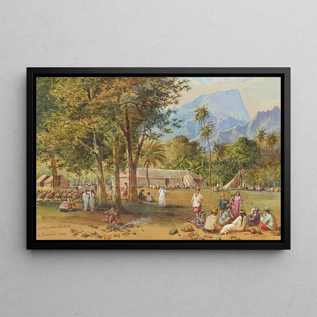 A Papeete, Tahiti : un viaggio nel cuore dei tropici. Nicholas Chevalier ci offre con "A Papeete, Tahiti" una finestra aperta sui paesaggi incantati dell'isola. La tela rappresenta scene vibranti di colori, dove il blu dell'oceano si mescola al verde rigoglioso della vegetazione. I dettagli delle palme e delle abitazioni tradizionali evocano un'atmosfera di tranquillità ed esotismo. Chevalier, attraverso la sua tecnica impressionista, riesce a catturare la luce e l'atmosfera unica di questo luogo, trasportando lo spettatore verso spiagge lontane e soleggiate. Nicholas Chevalier: un artista viaggiatore nel cuore del paesaggio. Nato nel 1828, Nicholas Chevalier è un pittore neozelandese che ha viaggiato in tutto il mondo, lasciando un'impronta indelebile nell'arte del paesaggio. Il suo soggiorno a Tahiti negli anni 1860 segna una svolta nella sua carriera, permettendogli di esplorare i temi dell'esotismo e della natura. Influenzato dal movimento romantico, Chevalier utilizza colori vivaci e composizioni dinamiche per esprimere la bellezza dei luoghi che visita. Il suo lavoro è una celebrazione dei paesaggi naturali, e svolge un ruolo chiave nella rappresentazione artistica delle isole del Pacifico. Una riproduzione decorativa con molteplici vantaggi. La riproduzione di "A Papeete, Tahiti" è un'aggiunta perfetta per qualsiasi arredamento d'interni, che si tratti di un soggiorno, di un ufficio o di una camera da letto. La qualità di stampa garantisce una fedeltà eccezionale ai colori vivaci e ai dettagli dell'opera originale, portando un tocco di esotismo e calore nel tuo spazio. Questa stampa evoca ricordi di viaggi e di evasione, creando un'atmosfera accogliente e ispirante. Scegliendo questa stampa, offri al tuo interno un pezzo d'arte che saprà sedurre ed emozionare i tuoi ospiti.
