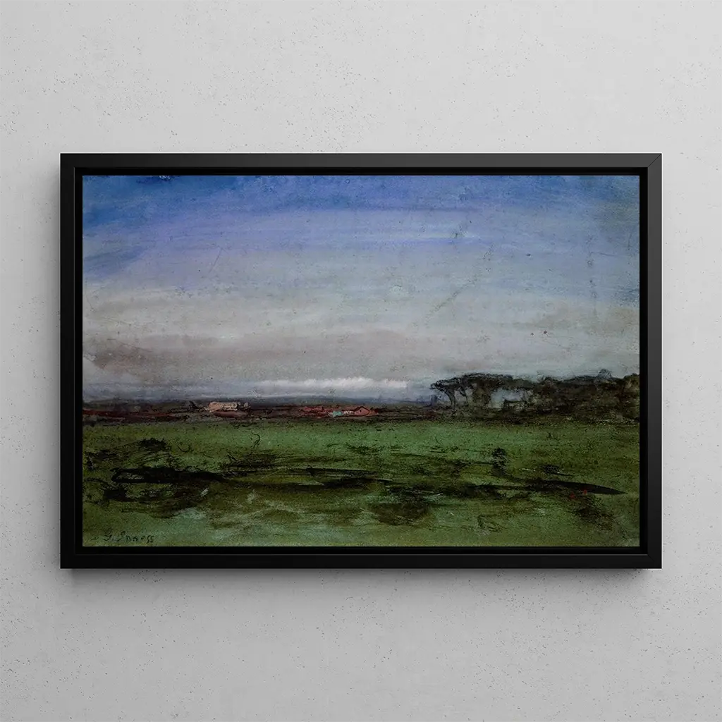 Attraverso la campagna : un'ode alla natura tranquilla In quest'opera, George Inness ci trasporta nel cuore di un paesaggio rurale intriso di serenità. La composizione, dominata da tonalità morbide di verde e marrone, evoca un'atmosfera rilassante, quasi meditativa. Le pennellate delicate e la luce diffusa creano un equilibrio armonioso tra il cielo e la terra. Gli alberi maestosi, i campi ondulanti e il cielo nuvoloso si mescolano per formare una scena in cui il tempo sembra sospeso. Questa tela, vera invito alla contemplazione, ci ricorda la bellezza semplice e senza tempo della natura. George Inness : il maestro del paesaggio americano George Inness, figura emblematica del paesaggio americano del XIX secolo, ha saputo catturare l’essenza della natura con una sensibilità unica. Influenzato dal movimento romantico e dalle filosofie spirituali della sua epoca, ha sviluppato uno stile che trascende la semplice rappresentazione. Le sue opere, spesso ispirate dai paesaggi europei, testimoniano una ricerca della luce e dell’armonia. Inness è stato anche un pioniere nell’uso del colore per evocare emozioni, cosa che ha segnato la sua epoca e influenzato molti artisti. La sua eredità perdura, rendendolo una figura imprescindibile nella storia dell’arte. Un acquisto decorativo con molteplici vantaggi La riproduzione di "Attraverso la campagna" è una scelta decorativa ideale per arricchire il vostro interno. Che si tratti di un soggiorno, di un ufficio o di una camera da letto, questa tela aggiunge un tocco di calma e di bellezza naturale. La qualità della riproduzione garantisce fedeltà ai dettagli e ai colori dell’opera originale, permettendo di godere del suo fascino estetico quotidianamente. Integrando quest’opera nella vostra decorazione, create uno spazio accogliente e ispirante, dove ogni sguardo si perde nella contemplazione di questo paesaggio incantato.