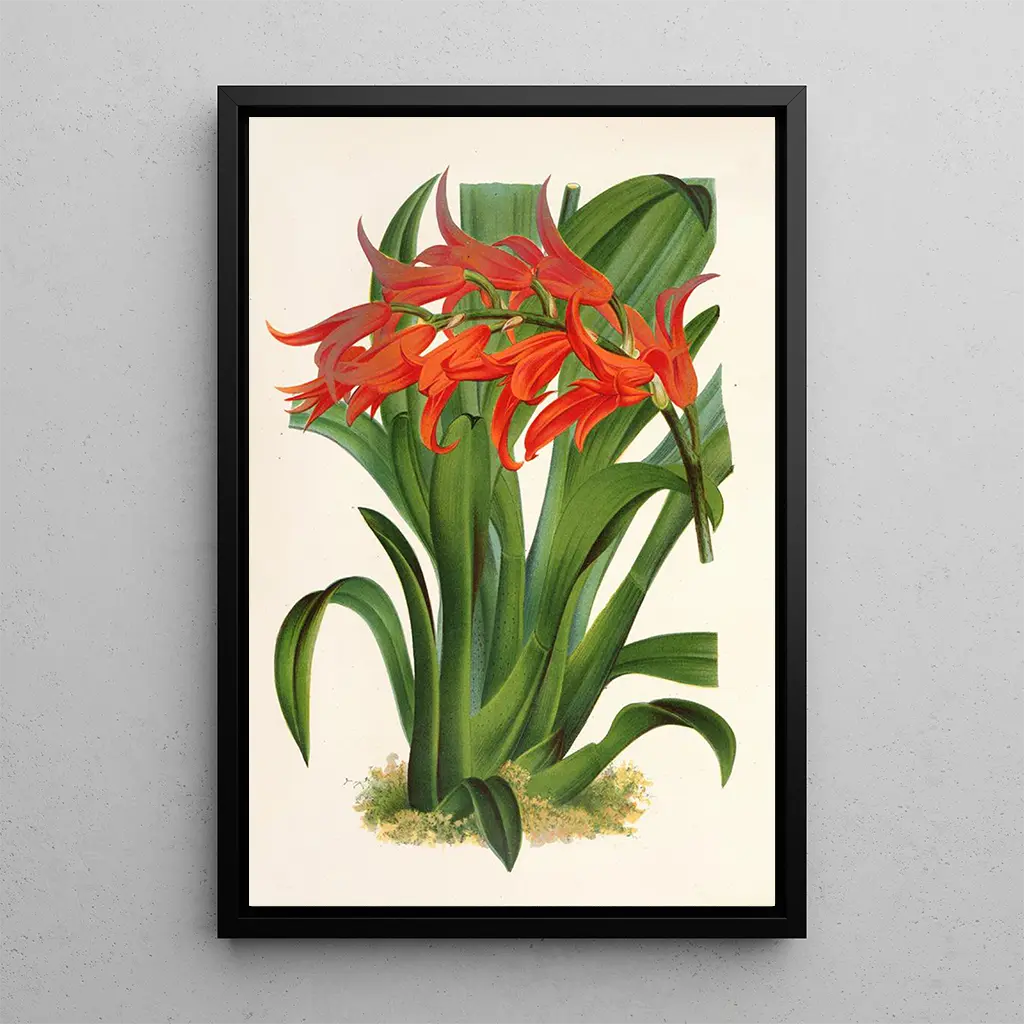 La stampa d'arte di Ada aurantiaca, un'opera emblematica di Charles Antoine Lemaire, evoca una vera esplosione di colori tropicali. Le sfumature vibranti di arancione e rosso si mescolano armoniosamente, creando un'atmosfera calda e accogliente. La tecnica di Lemaire, che combina precisione botanica e sensibilità artistica, permette di catturare la bellezza effimera di questa pianta. I dettagli minuziosi dei petali e delle foglie, resi con una delicatezza notevole, invitano lo spettatore a immergersi in un mondo rigoglioso, dove ogni elemento sembra prendere vita sotto la luce. Charles Antoine Lemaire: un pioniere dell'arte orticola Charles Antoine Lemaire, botanico e artista del XIX secolo, ha segnato la sua epoca con le sue illustrazioni di piante esotiche. Influenzato dal movimento romantico, ha saputo unire scienza e arte per creare opere di grande ricchezza visiva. Lemaire ha dedicato la sua vita allo studio delle specie vegetali, viaggiando in tutto il mondo per documentare la flora tropicale. Il suo lavoro ha contribuito alla popolarizzazione delle piante ornamentali in Europa, rendendolo una figura imprescindibile dell'arte orticola. La riproduzione di Ada aurantiaca testimonia il suo talento e il suo impegno verso la bellezza naturale. Un acquisto decorativo con molteplici vantaggi La stampa d'arte di Ada aurantiaca è un elemento decorativo che saprà abbellire qualsiasi spazio, che si tratti di un soggiorno, di un ufficio o di una camera da letto. La qualità di stampa e la fedeltà dei colori la rendono una scelta ideale per chi desidera portare un tocco di natura nel proprio interno. L'attrattiva estetica di questa tela risiede nella sua capacità di evocare il calore dei tropici, creando un'atmosfera serena e ispirante. Scegliendo questa opera, optate per una decorazione che unisce eleganza e originalità, celebrando la bellezza della flora.