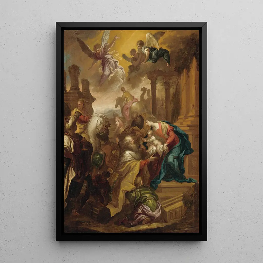 Adorazione dei Magi : un omaggio alla magia della nascita La riproduzione dell'Adorazione dei Magi è una scena vibrante ed emotiva che celebra la visita dei Re Magi al Bambino Gesù. I colori ricchi e profondi, che vanno dai dorati brillanti ai blu misteriosi, creano un'atmosfera allo stesso tempo festosa e sacra. La tecnica di Bartolomeo Biscaino, caratterizzata da un senso acuto del movimento e della luce, dà vita ai personaggi, ognuno esprimendo una devozione palpabile. Quest'opera, per il suo dinamismo e la sua composizione armoniosa, trasporta lo spettatore nel cuore di questo evento biblico emblematico. Bartolomeo Biscaino : un virtuoso del barocco italiano Bartolomeo Biscaino, attivo nel XVII secolo, è riconosciuto per il suo talento eccezionale nel campo della pittura religiosa. Cresciuto nella tradizione barocca, è stato influenzato da maestri come Caravaggio, integrando elementi di realismo ed emozione nelle sue opere. Biscaino ha saputo farsi un nome grazie alla sua capacità di catturare momenti di grande intensità spirituale, facendo delle sue stampe d'arte narrazioni visive potenti. Il suo patrimonio artistico perdura, testimonianza dell'importanza del suo lavoro nel panorama artistico italiano. Una acquisizione decorativa con molteplici vantaggi La riproduzione dell'Adorazione dei Magi è una scelta decorativa che si integra perfettamente in diversi ambienti. Che sia in un salotto, una sala da pranzo o uno spazio di meditazione, questa stampa d'arte porta una dimensione spirituale e festosa nel vostro interno. La qualità di stampa e la fedeltà ai dettagli originali ne fanno un pezzo d'arte che attira lo sguardo e suscita ammirazione. Optando per questa tela, arricchite la vostra decorazione mentre celebrate un momento chiave della tradizione cristiana, portando così un tocco di storia e cultura nella vostra quotidianità.