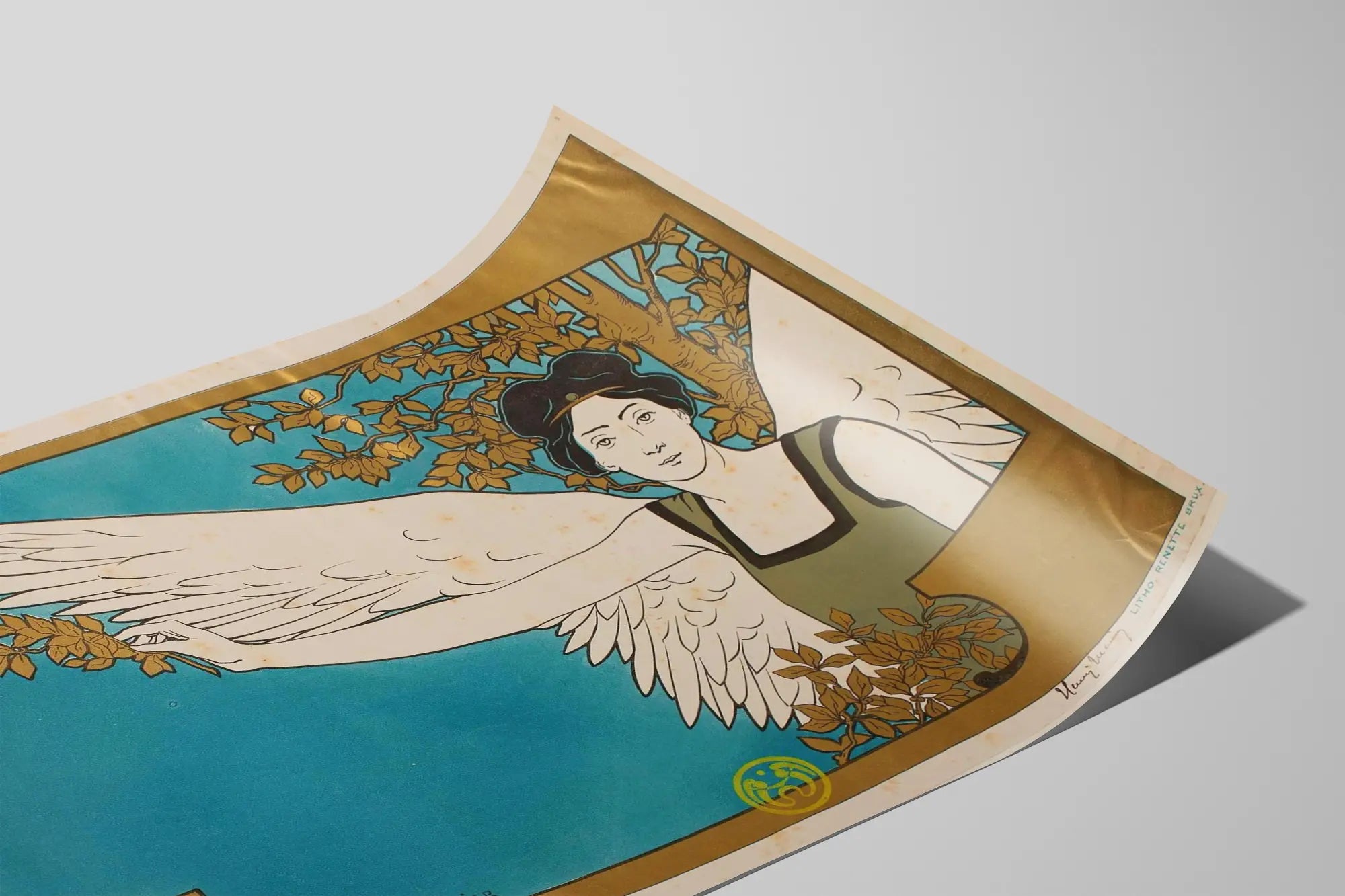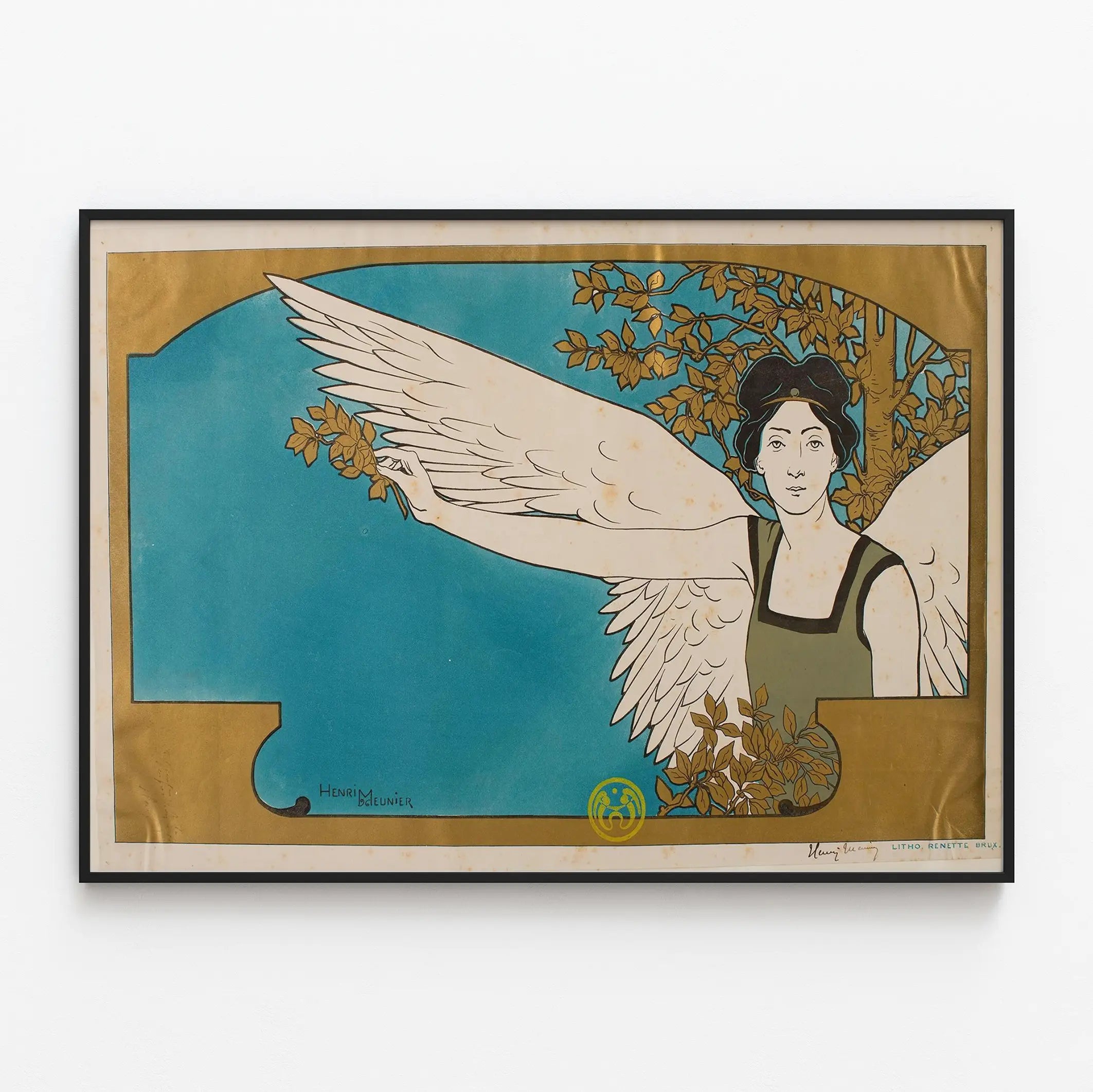 Scoprite questa elegante locandina Art Nouveau intitolata 'La Guida Musicale', un'opera decorativa da parete firmata Henri Meunier. Questo poster raffigura una figura femminile alata, simbolo di ispirazione e musa, che si staglia su uno sfondo azzurro cobalto incorniciato d'oro. Lo stile grafico, caratteristico degli inizi del XX secolo, combina raffinatezza delle linee e scelte cromatiche armoniose, offrendo un risultato visivo sobrio e sofisticato. Questa decorazione murale, stampata in litografia, rappresenta un esempio emblematico dell'epoca Art Nouveau, ideale per gli appassionati d'arte e musica desiderosi di abbellire i propri ambienti con una locandina ricca di carattere e poesia visiva. Perfetta da incorniciare, questa opera aggiunge un tocco di eleganza e storia a ogni stanza, che si tratti di un salotto, di uno studio o di una sala musicale. La sua composizione artisticamente equilibrata, tra la delicatezza della figura e la presenza marcata della natura intorno, la rende un quadro che cattura lo sguardo e invita alla contemplazione. Scegliete questa locandina 'La Guida Musicale' per infondere un’atmosfera vintage e culturale alla vostra decorazione murale, valorizzando al contempo un lavoro artistico tradizionale di grande raffinatezza. Questo poster saprà conquistare tutti coloro che apprezzano l’unione tra arte grafica e elementi naturali, sublimata da uno stile unico e senza tempo.