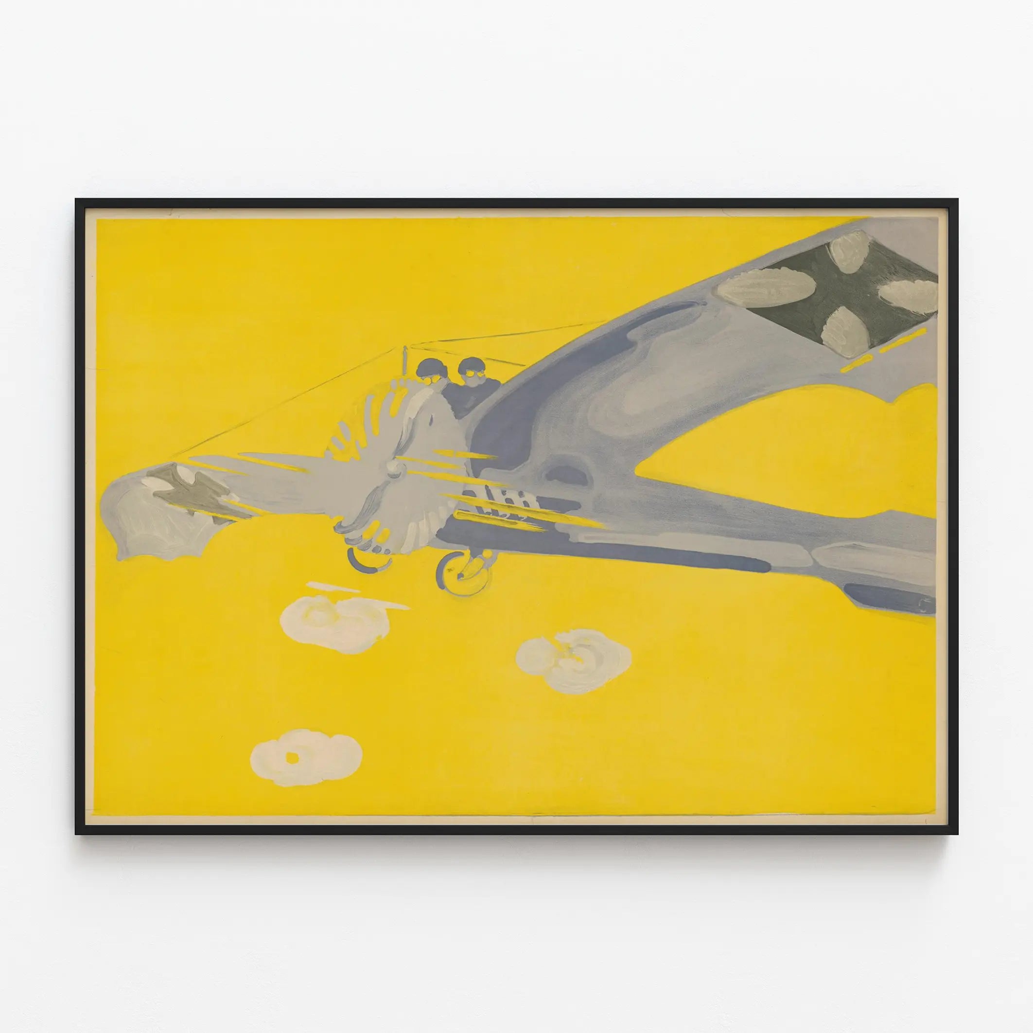 Scopri questa locandina vintage raffigurante un aereo biplano militare a due posti stilizzato su uno sfondo giallo vivace. Quest'opera di decorazione murale mette in evidenza un aereo militare dalle forme semplificate, dipinto in sfumature di grigio, con un contrasto sorprendente contro il giallo brillante dello sfondo. I dettagli del biplano, tra cui le eliche, i due personaggi seduti fianco a fianco nel cockpit aperto e le ruote visibili, conferiscono un tocco dinamico e originale a questa locandina. Questa illustrazione artistica e minimalista è ideale per chi cerca una decorazione murale audace e originale, che unisce il mondo dell'aviazione allo stile retrò. Perfetta per una camera da letto, uno studio o uno spazio dedicato alla passione per l'aviazione, questa locandina evoca sia il movimento, la leggerezza del volo, sia una sensazione di libertà grazie al suo grafismo essenziale e ai colori decisi. La sua dimensione pratica facilita l'inserimento in diversi stili di interni, siano essi moderni o più vintage. Regalate alle vostre pareti un tocco di originalità con questa stampa unica, che cattura l'attenzione per l'armonia di colori e il soggetto storico rivisitato in chiave decorativa. Questa decorazione murale sarà anche un interessante spunto di conversazione per gli appassionati di aviazione o i collezionisti di locandine artistiche, in uno stile grafico semplice ma d'impatto.