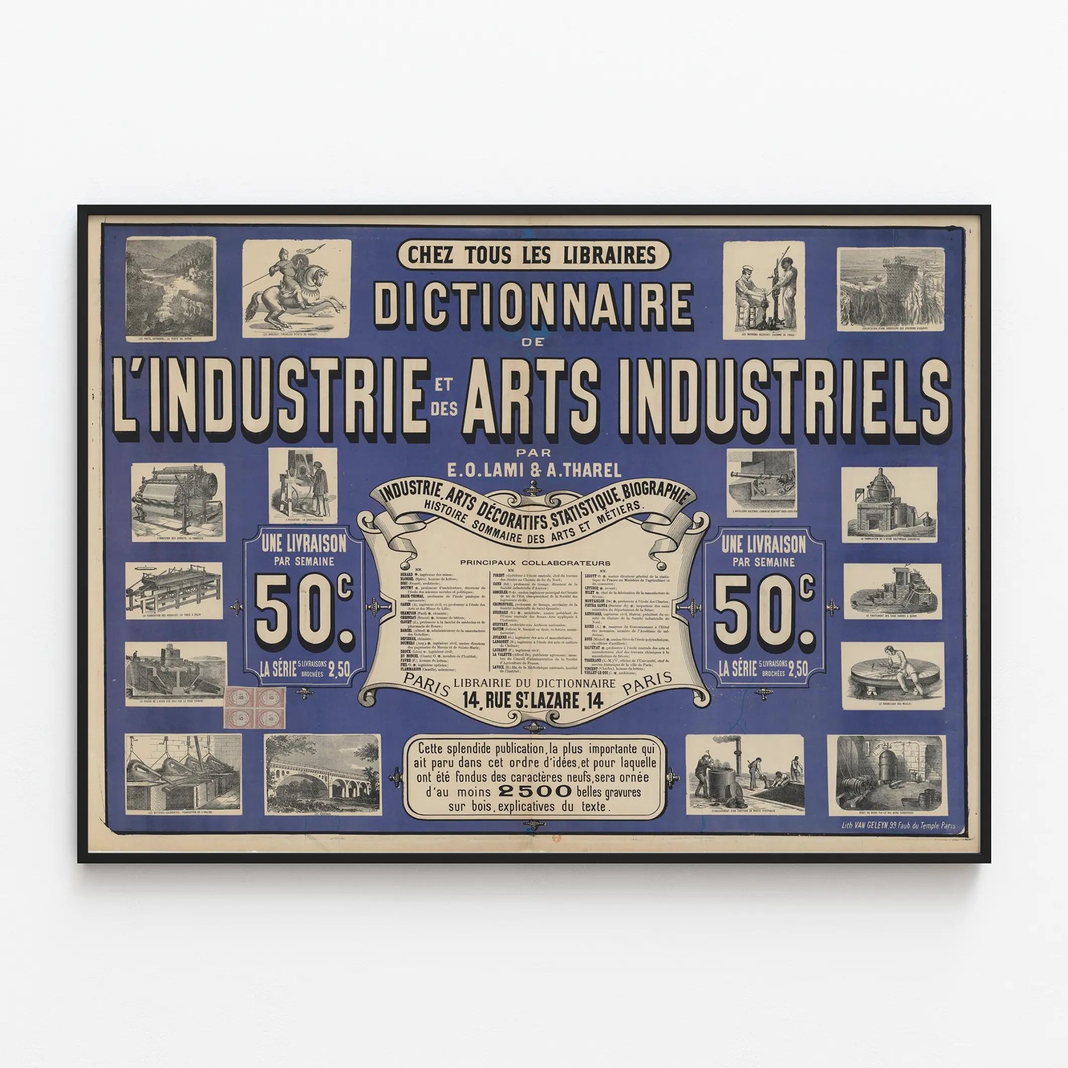 Affiche vintage Dictionnaire de l'industrie et des arts industriels par E.O. Lami & A. Tharel