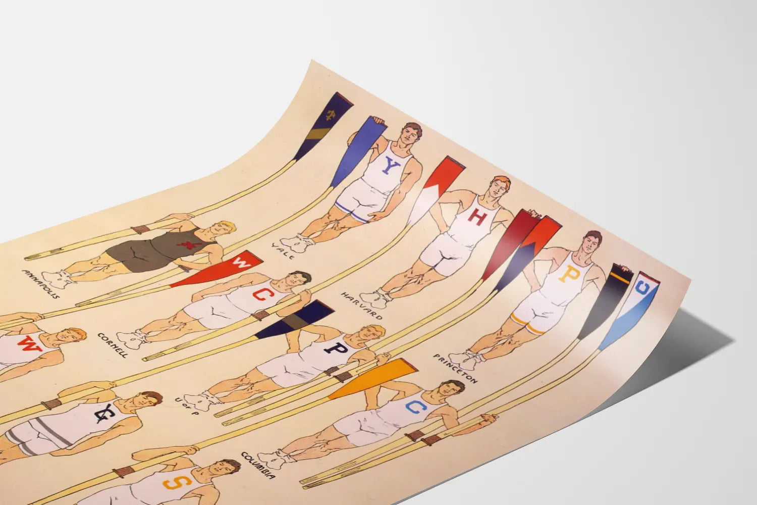 Poster vintage delle squadre di canottaggio delle grandi università americane