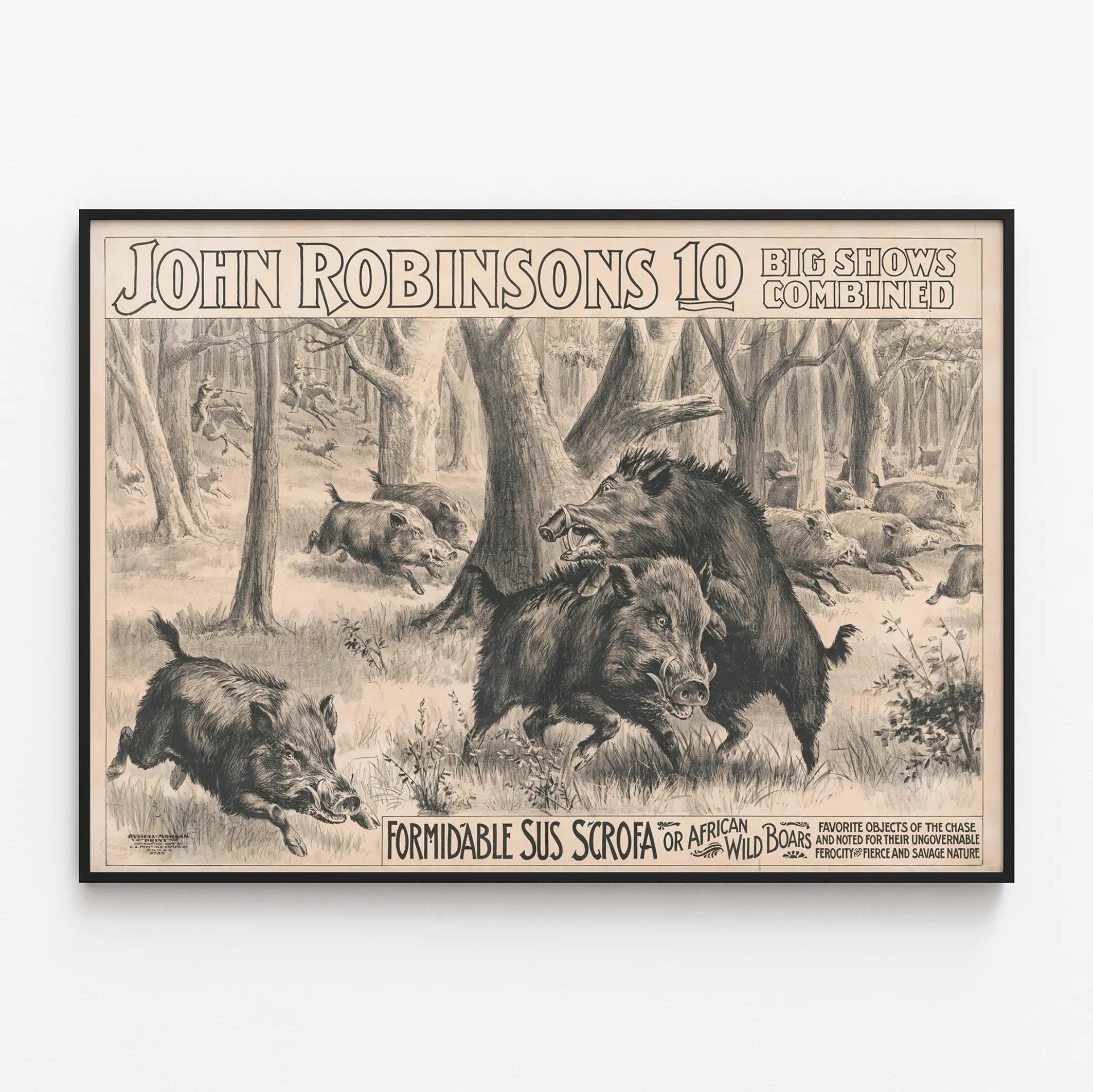 Affiche vintage Sangliers africains sauvages - John Robinsons 10 Big Shows