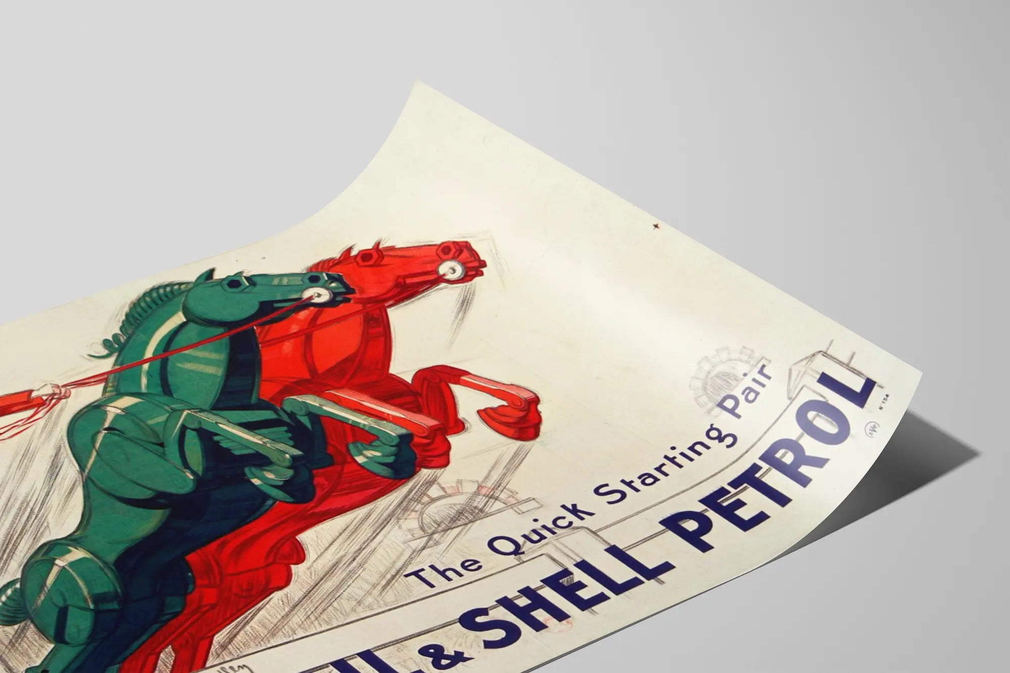 Affiche vintage Shell Oil & Shell Petrol chevaux mécaniques