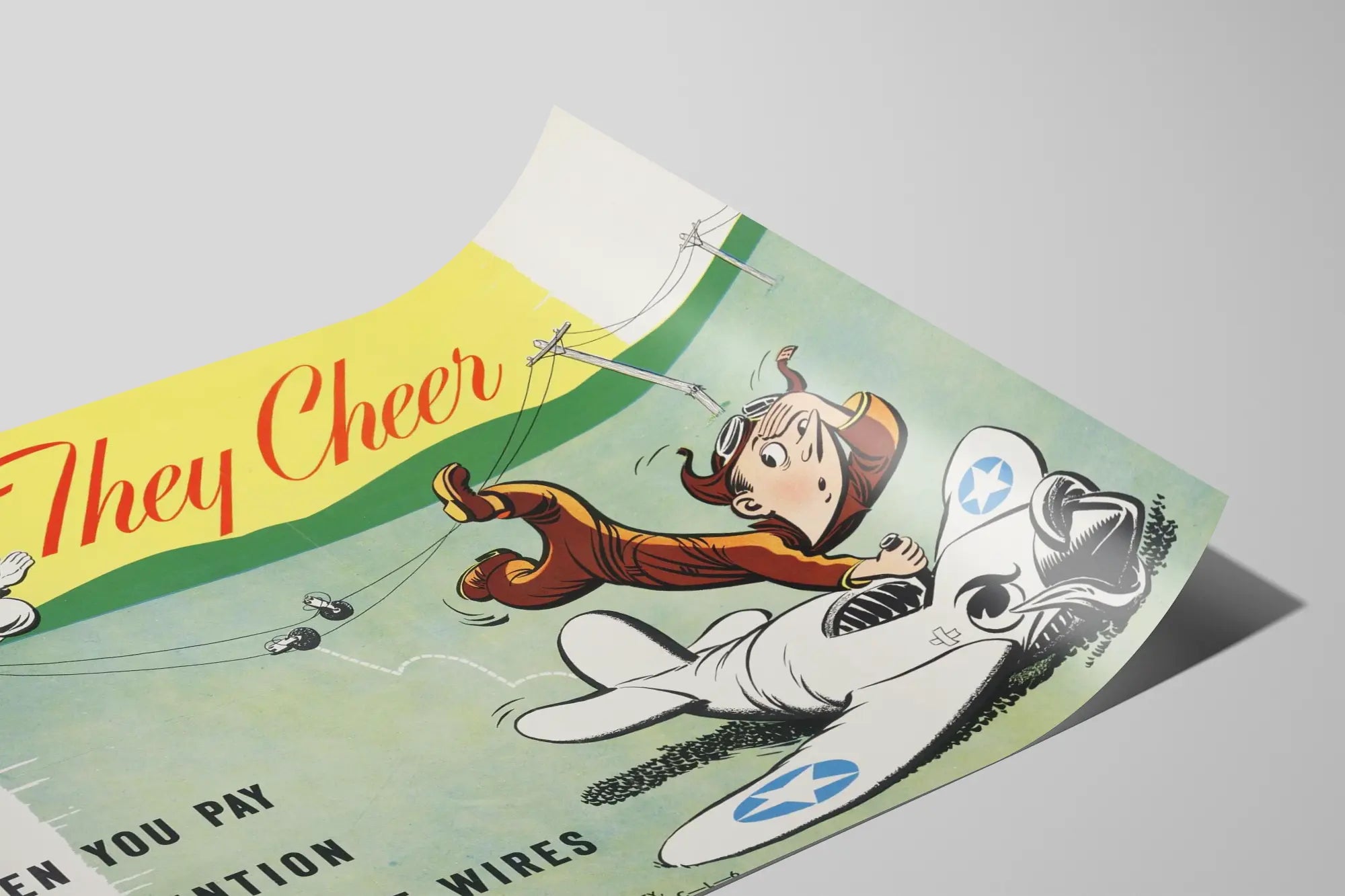 Affiche vintage They Cheer - Sécurité Aérienne et Fils Téléphoniques