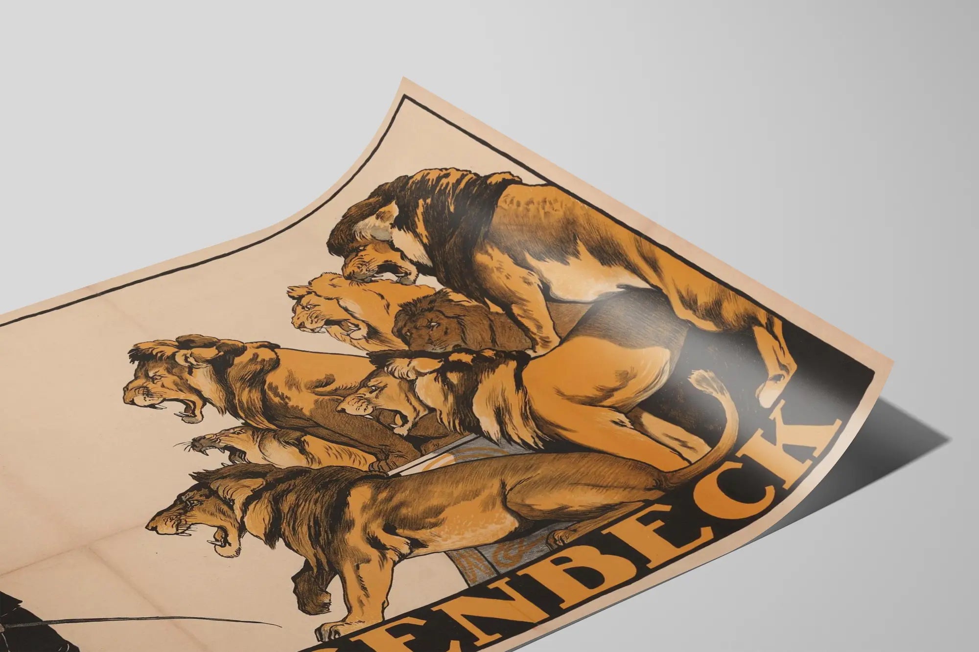 Affiche vintage Wilhelm Hagenbeck et les lions rugissants