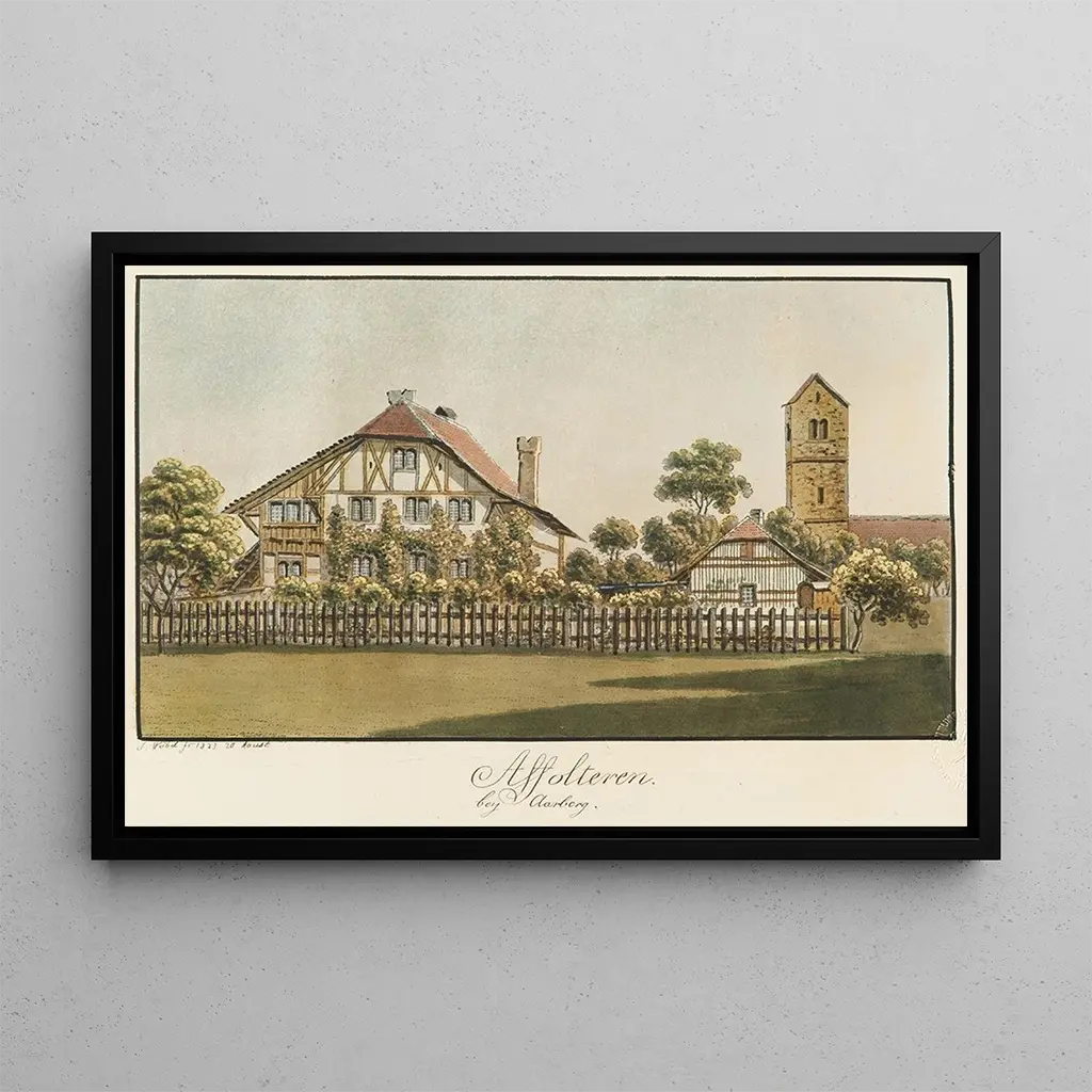 Affoltern près d'Aarberg : una scena bucolica intrisa di serenità In questa stampa d'arte di Affoltern près d'Aarberg, Jakob Samuel Weibel cattura la bellezza pacifica di un paesaggio rurale. Le tonalità morbide di verde e blu si mescolano armoniosamente, evocando un'atmosfera di tranquillità. La tecnica dell'olio su tela permette di rendere la luce in modo sottile, creando ombre delicate che aggiungono profondità alla composizione. I dettagli minuziosi degli alberi e dei campi testimoniano un'osservazione attenta della natura, mentre il cielo, punteggiato di nuvole leggere, invita alla contemplazione. Quest'opera, allo stesso tempo semplice ed evocativa, trasporta lo spettatore in un momento di calma e bellezza. Jakob Samuel Weibel : un testimone della natura svizzera del XIX secolo Jakob Samuel Weibel, pittore svizzero del XIX secolo, è riconosciuto per i suoi paesaggi che riflettono l'armonia tra l'uomo e la natura. Influenzato dal movimento romantico, si inscrive in una tradizione artistica che valorizza la bellezza dei paesaggi svizzeri. Le sue opere sono spesso intrise di una sensibilità particolare, cercando di catturare l'essenza dei luoghi che rappresenta. Sebbene meno conosciuto di alcuni dei suoi contemporanei, Weibel è riuscito a lasciare un'impronta duratura nel mondo dell'arte, soprattutto per la sua capacità di evocare emozioni attraverso i suoi paesaggi. Il suo lavoro è una testimonianza preziosa dell'evoluzione della pittura di paesaggio in Svizzera. Una riproduzione decorativa con molteplici vantaggi La stampa d'arte di Affoltern près d'Aarberg è un pezzo decorativo ideale per portare un tocco di serenità nel vostro interno. Che sia in un soggiorno, in uno studio o in una camera da letto, questa tela si integra perfettamente in vari stili di arredamento, dal classico al contemporaneo. La qualità della stampa garantisce una fedeltà notevole ai colori e ai dettagli dell'opera originale, permettendo di godere dell'attrattiva estetica di questo paesaggio rilassante. Scegliendo questa tela, offrite al vostro spazio un'atmosfera calda e accogliente, rendendo omaggio all'arte di Jakob Samuel Weibel.
