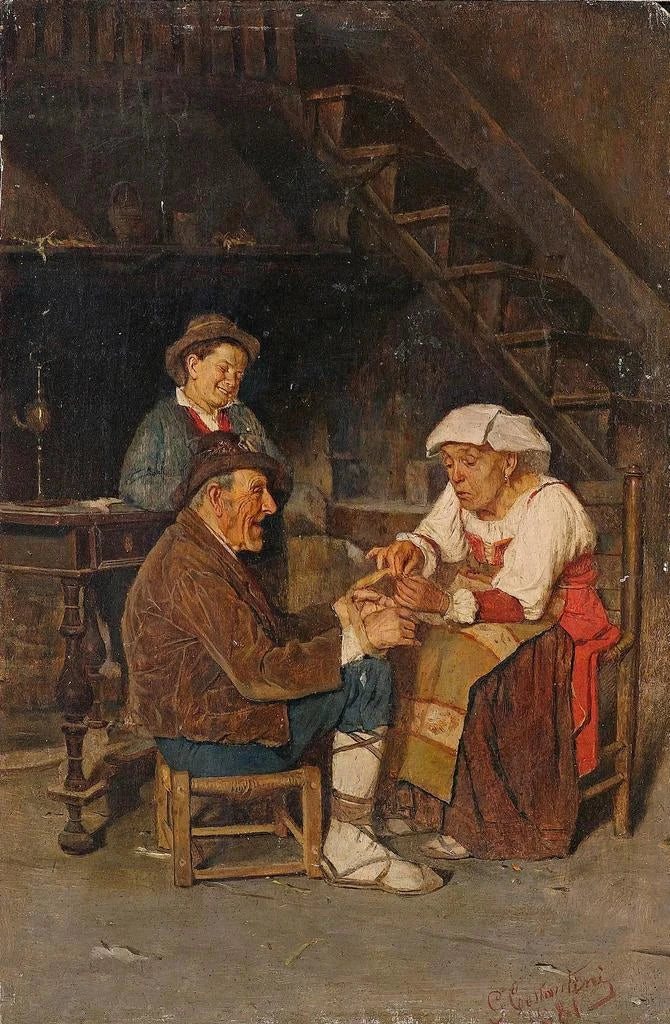 Giuseppe Costantini, attivo nel XIX secolo, è noto per le sue rappresentazioni di scene della vita quotidiana, mettendo in evidenza mestieri spesso dimenticati. La sua stampa d'arte "Aiuto per la merlettaia" illustra perfettamente il suo impegno a immortalare momenti della vita ordinaria con una sensibilità particolare. Influenzato dal movimento realista, Costantini ha saputo catturare la bellezza dei gesti semplici e delle tradizioni artigianali. Il suo lavoro è una testimonianza preziosa della sua epoca, offrendo uno sguardo sui valori e le pratiche che hanno plasmato la società italiana.