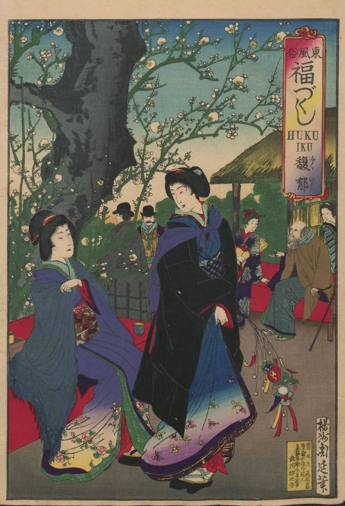 Toyohara Chikanobu, attivo durante la seconda metà del XIX secolo, è uno degli artisti più emblematici del movimento ukiyo-e. Influenzato dai cambiamenti sociali e politici del suo tempo, ha saputo unire tradizione e modernità nelle sue opere. Chikanobu è stato un pioniere nell'integrazione di temi contemporanei, rimanendo fedele alle tecniche ancestrali. Le sue stampe, come "L'Album de Nishikie Pl24", testimoniano la sua abilità nel rappresentare la bellezza effimera della vita quotidiana, catturando allo stesso tempo l'essenza della cultura giapponese in un'epoca di transizione.