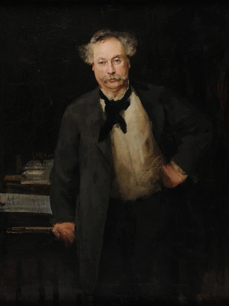 Alfred Philippe Roll, il cui percorso artistico è segnato da una profonda sensibilità, ha saputo imporsi come uno dei ritrattisti più in vista del suo tempo. Allievo di grandi maestri, ha sviluppato uno stile che unisce tradizione e modernità, integrando elementi del realismo pur preservando una certa poesia nelle sue opere. La sua capacità di catturare l'essenza dei suoi modelli gli ha permesso di lavorare con personalità influenti della sua epoca, facendolo diventare un attore chiave nel mondo artistico del XIX secolo. L'incontro tra Roll e Dumas fils è emblematico di quell'epoca in cui la letteratura e le arti visive si intrecciano.
