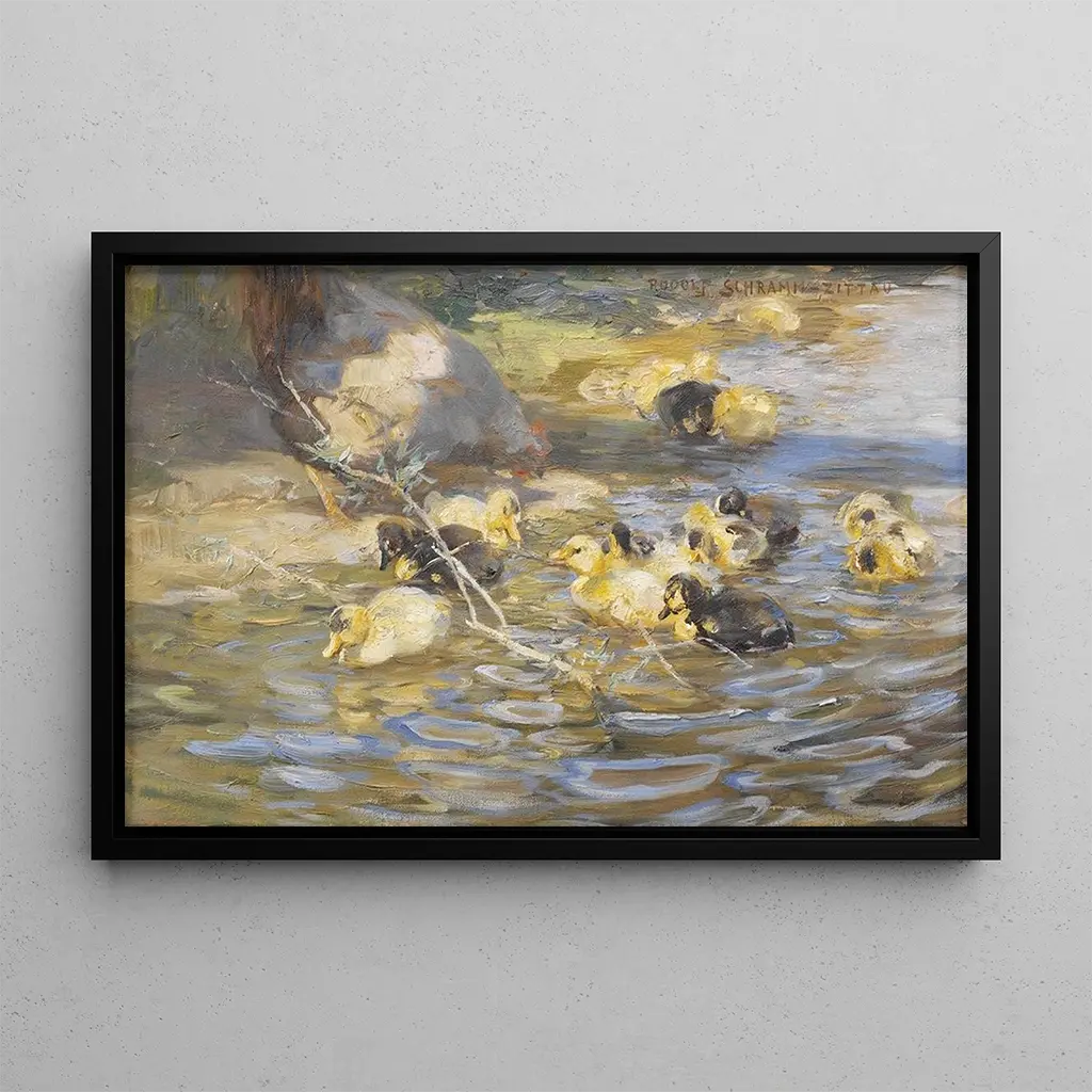La stampa d'arte Canards ci immerge in un quadro vivente, dove la natura fiorisce sotto il pennello di Rudolf Schramm-Zittau. I canards, rappresentati nella loro piena magnificenza, si muovono in un ambiente acquatico sereno, circondati da vegetazione lussureggiante. I colori vivaci e i dettagli delicati catturano l'essenza della fauna, creando un'atmosfera pacifica e gioiosa. Ogni colpo di pennello sembra infondere una vita nuova a questi uccelli, invitando lo spettatore ad apprezzare la bellezza semplice della natura.