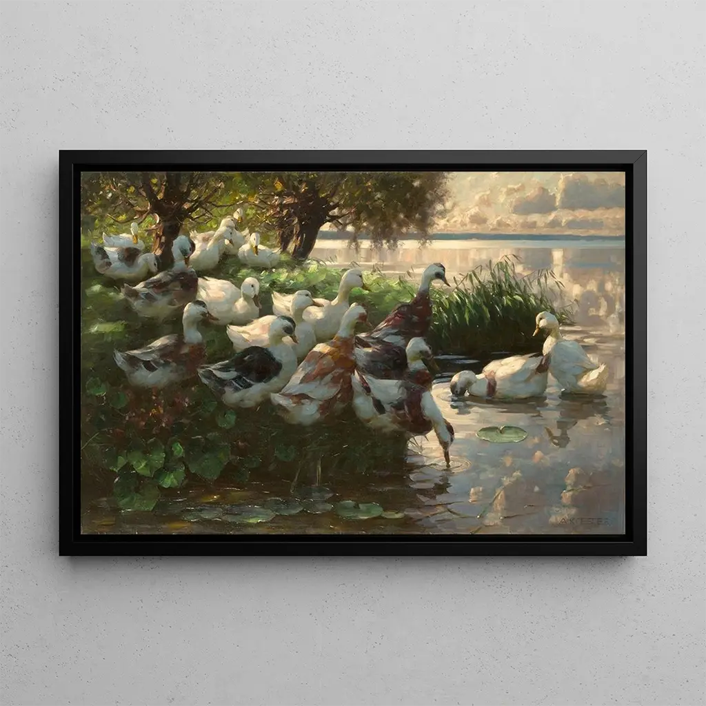 La riproduzione di Canards au bord du lac è ideale per portare un tocco di natura nel vostro interno. Che si trovi in un soggiorno accogliente, in un ufficio ispirante o in una camera rilassante, questa stampa d'arte si integra perfettamente con vari stili di arredamento. La qualità della riproduzione garantisce fedeltà ai dettagli originali, permettendo di godere della bellezza dell'opera quotidianamente. Con il suo indiscusso fascino estetico, questa tela diventa un punto focale che invita alla rêverie e alla contemplazione, arricchendo così il vostro spazio vitale.