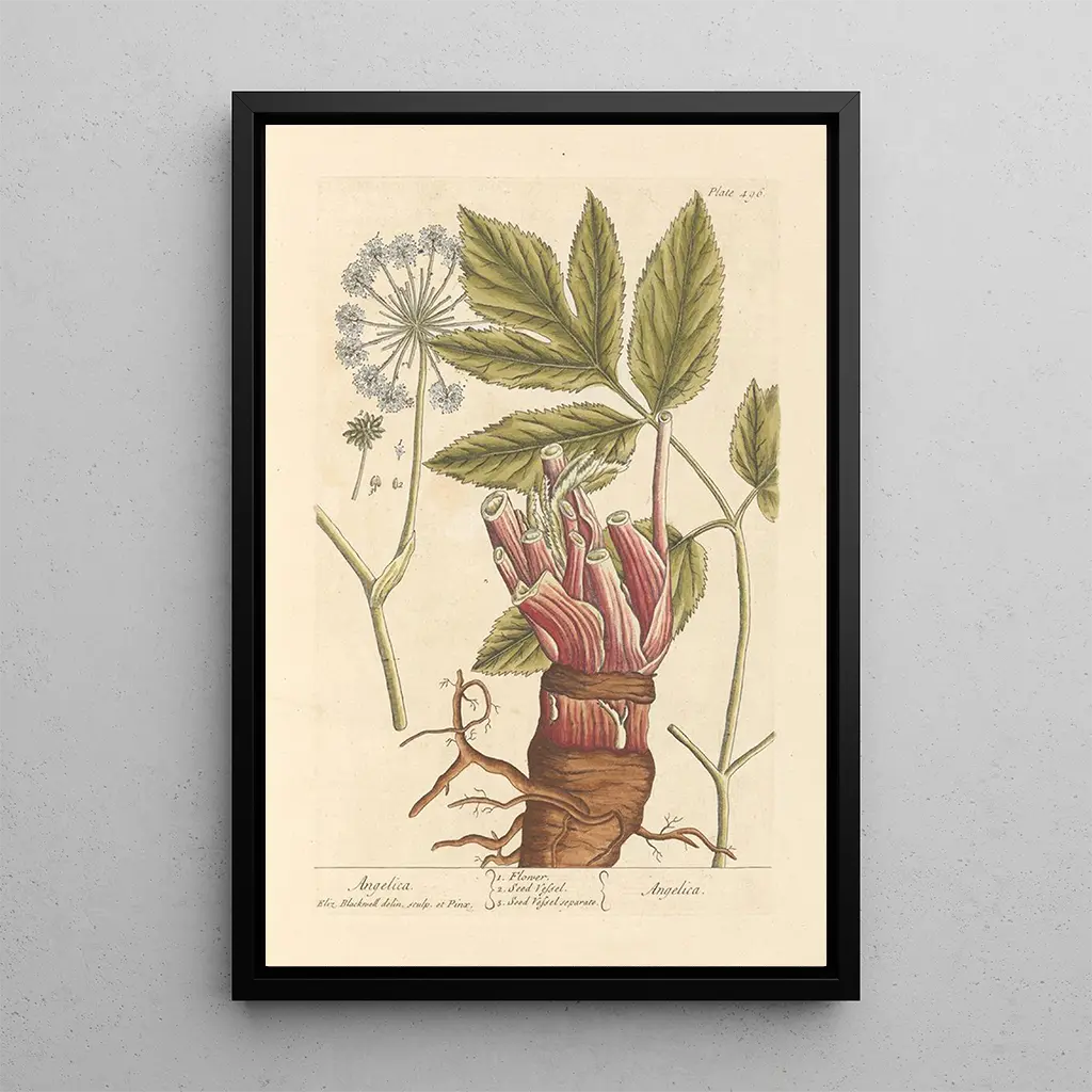 L’opera Angélique di Elizabeth Blackwell è una rappresentazione affascinante di questa pianta, catturata con una precisione botanica notevole. I colori morbidi e naturali, che vanno dal verde tenero al bianco brillante, evocano un’atmosfera pacifica e serena. La tecnica dell’acquarello, associata a un tratto fine e delicato, permette di valorizzare i dettagli delle foglie e dei fiori. Ogni elemento sembra prendere vita, invitando lo spettatore a immergersi in un universo floreale intriso di dolcezza e leggerezza. Questa stampa d'arte di Angélique è molto più di un semplice quadro; è una celebrazione della bellezza della natura.
